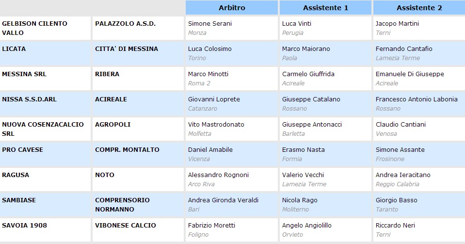 Queste le designazioni complete del 21° turno di campionato nel girone I di serie D: