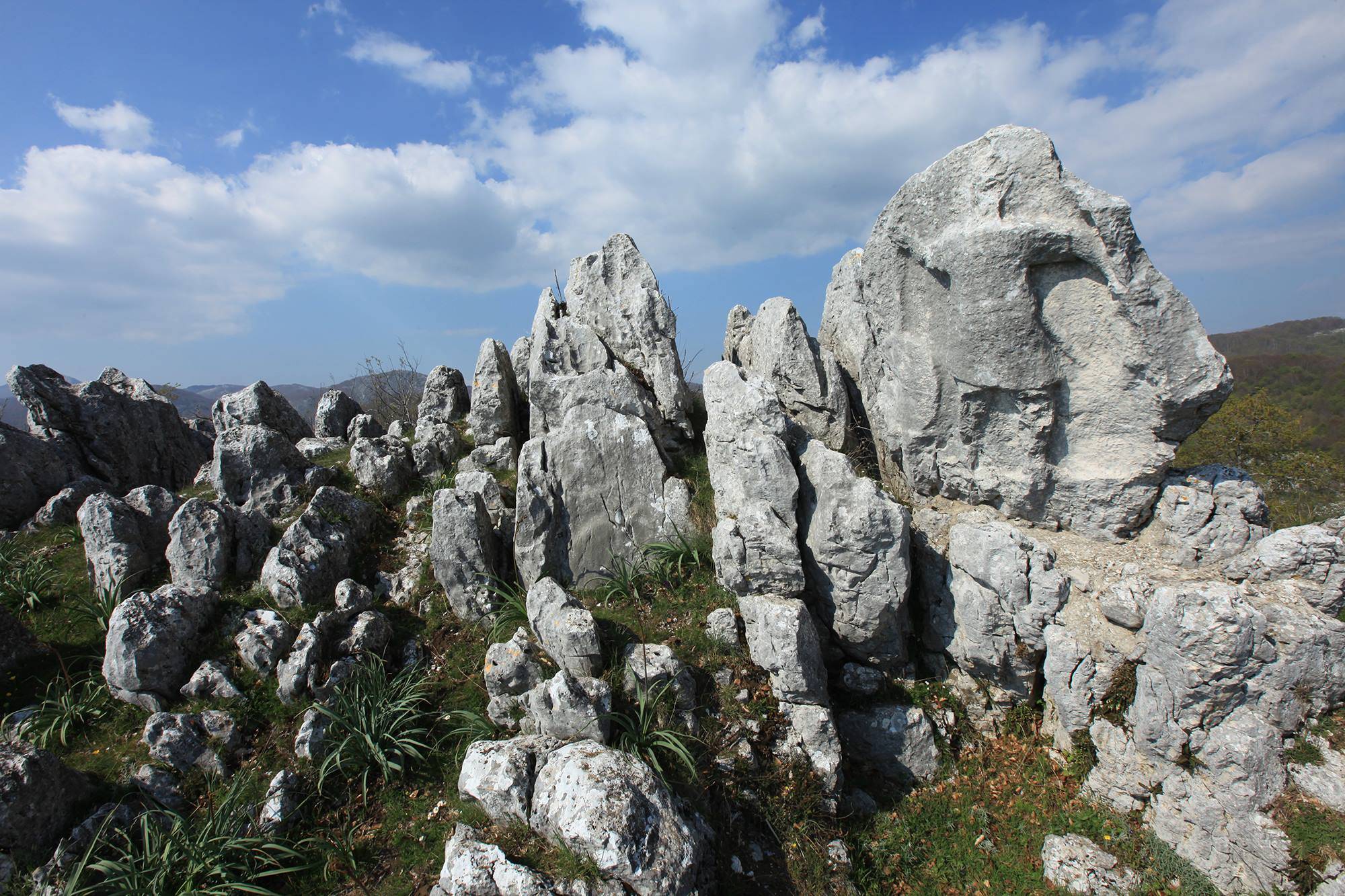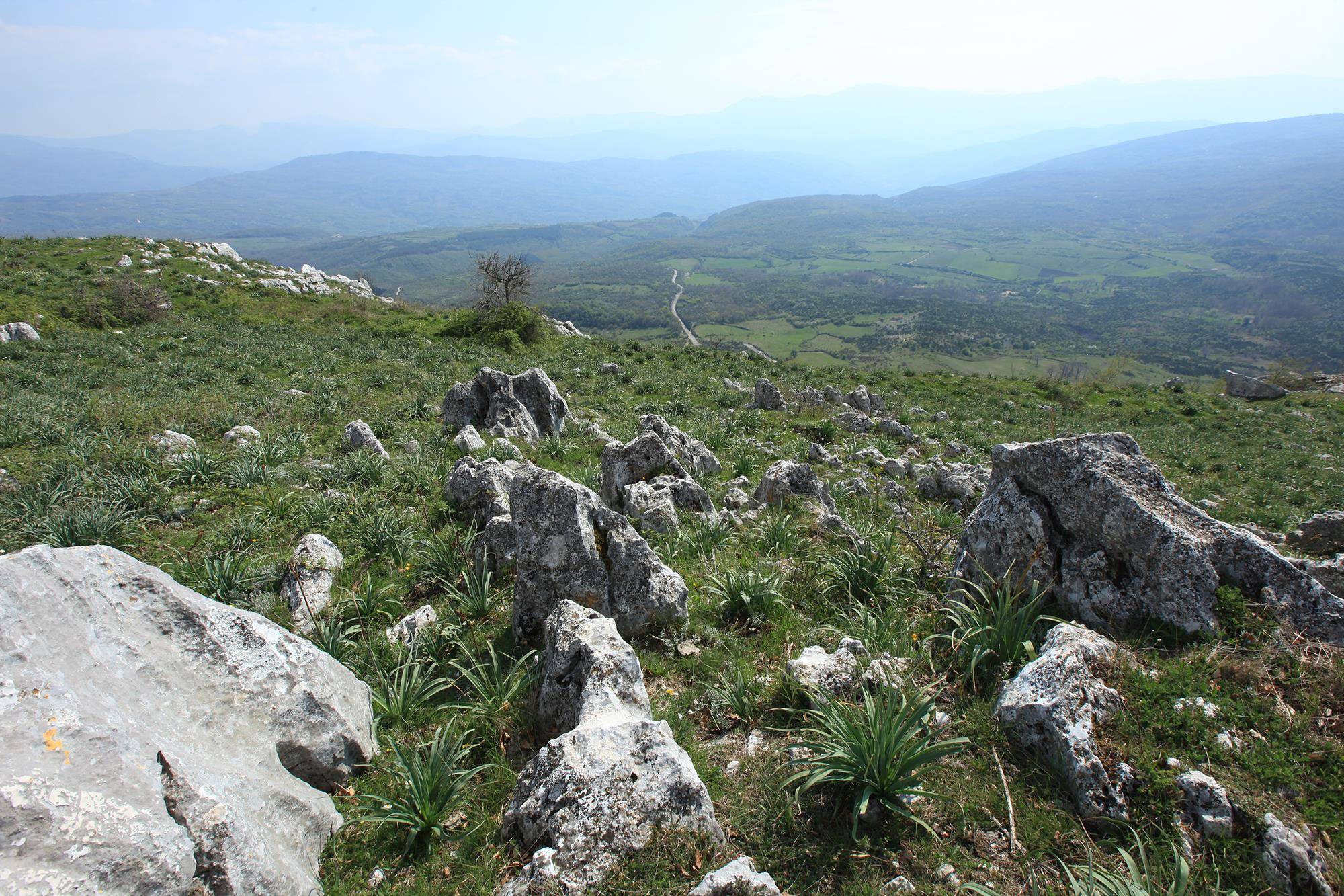 Costa Palomba Si tratta di un insediamento all’aperto del Bronzo Medio-Recente. La commissione Grotte della Soc. Alpina delle Giulie, ha intrapreso negli anni ‘60 diverse campagne speleologiche di esplorazione e di rilevamento delle cavità carsiche, nonché l’analisi e lo studio geomorfologico dei fenomeni di superficie presenti nella zona centrale del massiccio calcareo del monte Alburno. Con la campagna di esplorazione speleologica dell’estate del 1963 è stato effettuato un importante rinvenimento sul monte denominato Costa Palomba (quota m.1125). La vetta del monte si presenta abbastanza vasta e più o meno piana, brulla e ricoperta da una coltre discontinua di terreno bruno-rossastro e nerastro. Al centro di questi spuntoni si trova un lastrone di roccia quasi verticale rivolto verso SW e dominante quasi tutta la spianata con una scultura. L’area ha restituito importanti rinvenimenti. Il lato meridionale del monte, ad esempio, dal quale si domina una parte dell’ampia vallata del Calore, conserva scarse tracce di un rozzo muro ad intonaco di probabile età romana. Sul lato opposto (quello rivolto cioè a NE), su di un lastrone verticale fronteggiante l’interno della spianata, si trova una grande scultura rupestre, cosiddetta “Antece”, purtroppo, notevolmente danneggiata dal tempo e dagli uomini. Una piccola trincea di saggio, effettuata nella parte centrale del ripiano, alla sinistra della scultura, ha restituito numerosi resti ceramici.