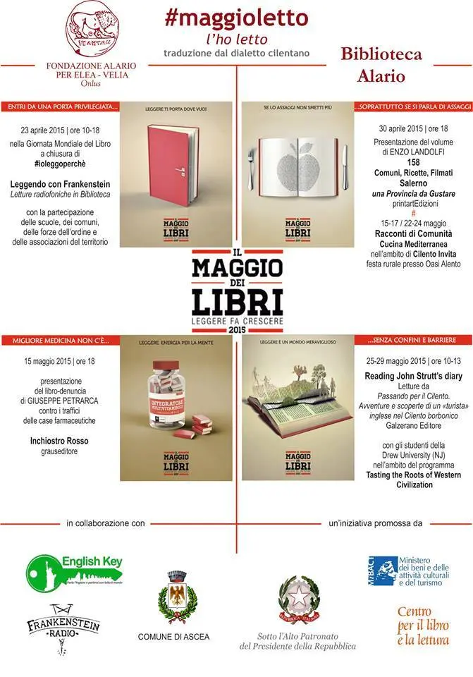 ASCEA. La Fondazione Alario per Elea-Velia Onlus aderisce anche quest’anno a Il Maggio dei Libri, kermesse nazionale di invito alla lettura partita lo scorso 23 aprile, Giornata Mondiale del Libro, a chiusura dell’iniziativa dell’AIE - Associazione Italiana Editori - #ioleggoperché.