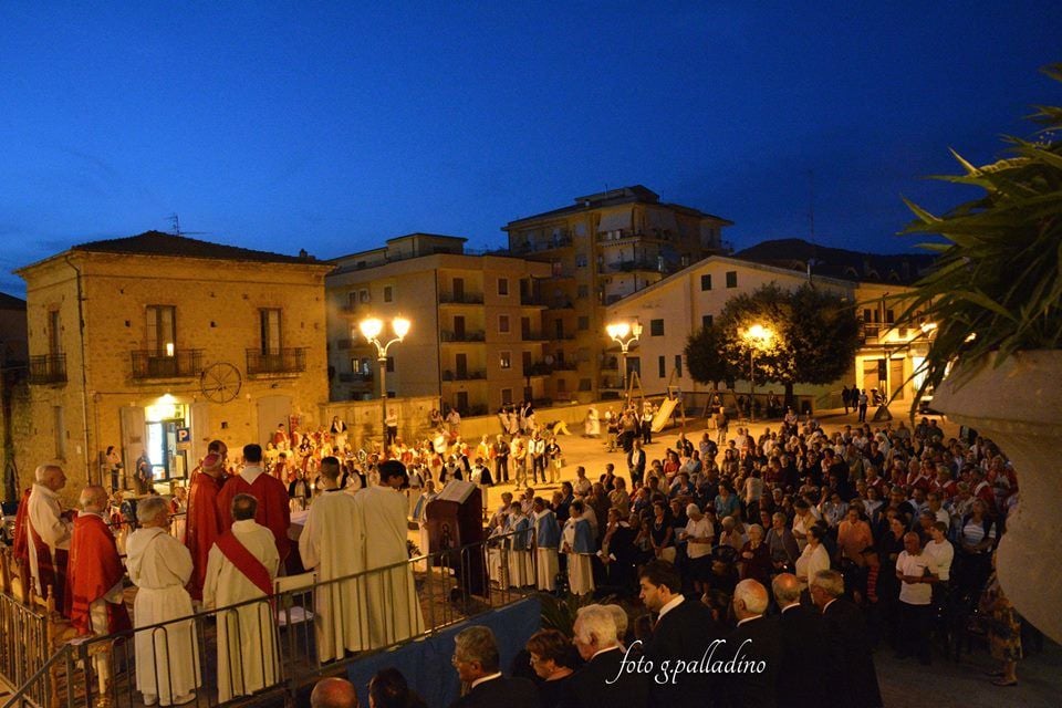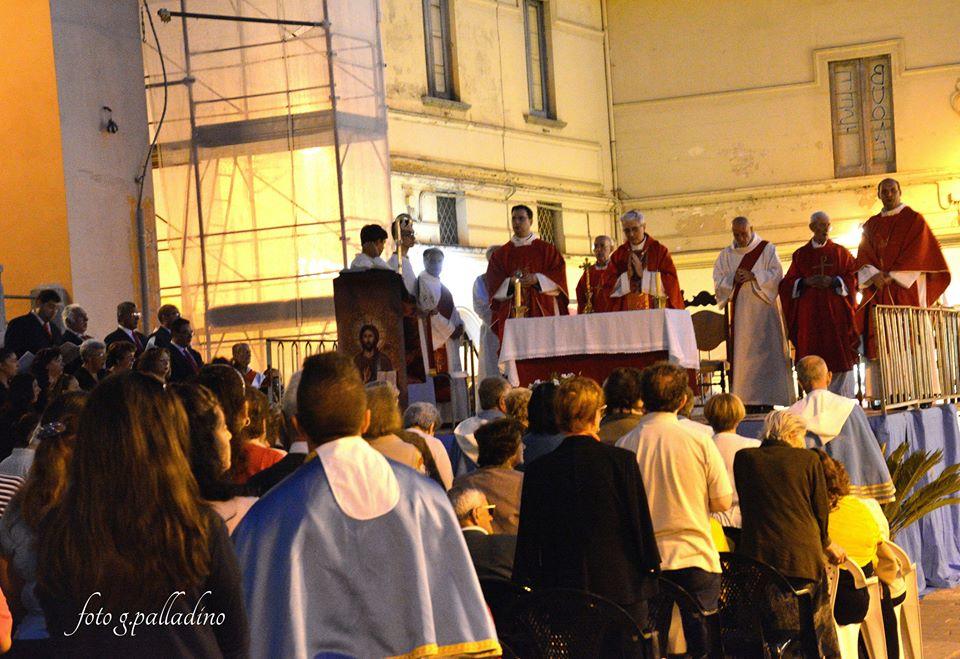 VALLO DELLA LUCANIA. Anche quest’anno il vescovo Ciro Miniero ha invitato le confraternite della diocesi a prendere parte ai riti in onore della Santa Croce. Così ieri, 14 setttembre, i rappresentanti delle sedici confraternite convenute hanno presenziato alla ormai tradizionale Via Crucis che ha percorso i vicoli del centro storico della città di Vallo. Giunti in Piazza Santa Caterina, poi, i fedeli hanno partecipato alla messa celebrata dal vescovo Miniero.