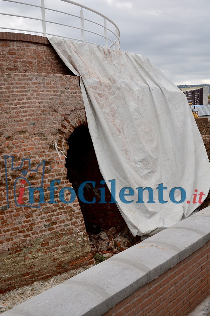 AGROPOLI. Una parte del muro dell’antica fornace è crollato nella serata di lunedì, lungo la parete della struttura che affaccia su via della Libertà, forse a causa del maltempo. Già il giorno seguente gli operai della ditta incaricata delle opere di riqualificazione hanno iniziato gli interventi per rimettere in sesto la parte di muro in cui si è registrato lo smottamento che per fortuna ha interessato soltanto una porzione limitata dell’antica fabbrica di laterizi.