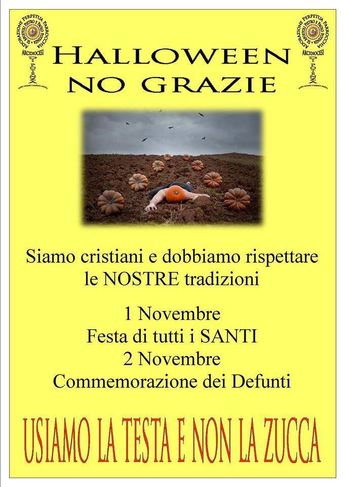 Quanti sono i ragazzini che già dai primi di ottobre pensano alla festa di Halloween? A quale costume indossare. Dove andare a festeggiare. I dolcetti da preparare. E le disco? Si inventano di tutto per attirare gli adolescenti. Le maestre preparano le zucche ed insegnano, nei giorni che precedono il 31 ottobre, ai piccoli alunni come creare con le proprie manine i lavoretti con cui addobbare le aule. Ludoteche, sale polifunzionali, disco, pub, tutti in festa. Qualche genitore chiede addirittura la sala della parrocchia per permettere ai bimbi di festeggiare il tradizionale “dolcetto o scherzetto”. Ma i preti, poiché la festa di Halloween è considerata diseducativa e contraria ai valori cristiani, non concedono l’autorizzazione. La celebrazione, infatti, porrebbe l’accento sulla morte vista in maniera irrisoria, distogliendo gli animi dalla celebrazione dei santi e dalla commemorazione dei defunti.