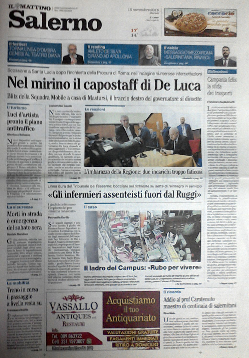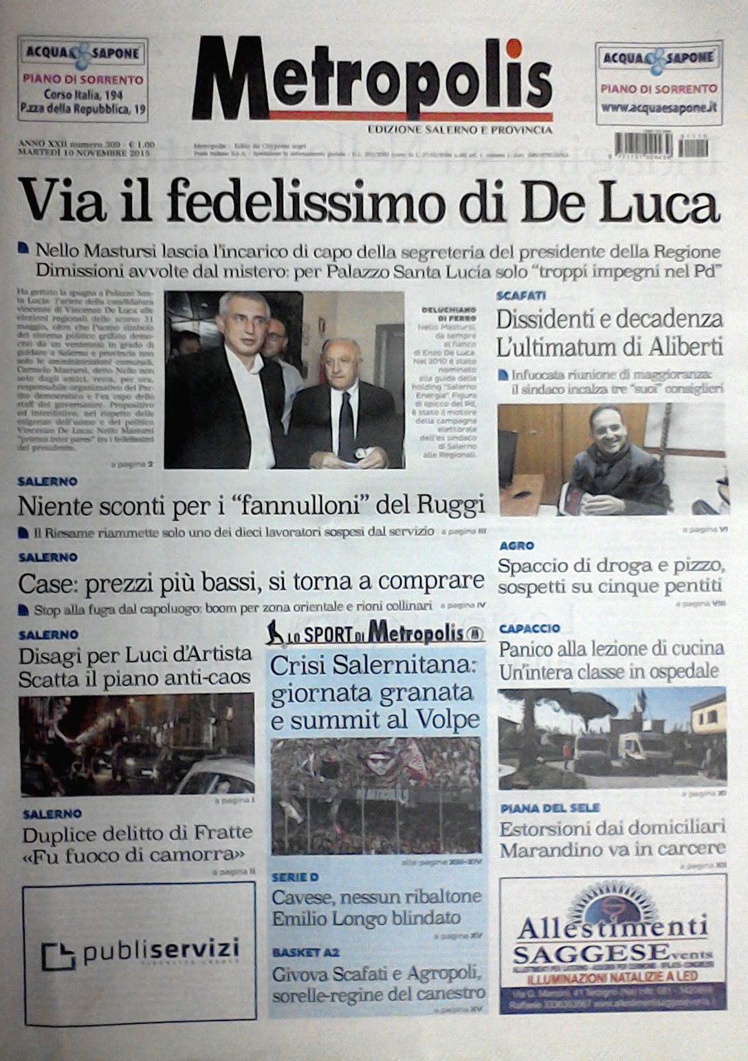 Rassegna stampa del 5 novembre 2015. Ecco le prime pagine dei quotidiani salernitani oggi in edicola. Clicca in basso per sfogliare Il Mattino, La Città, Le Cronache, Metropolis.