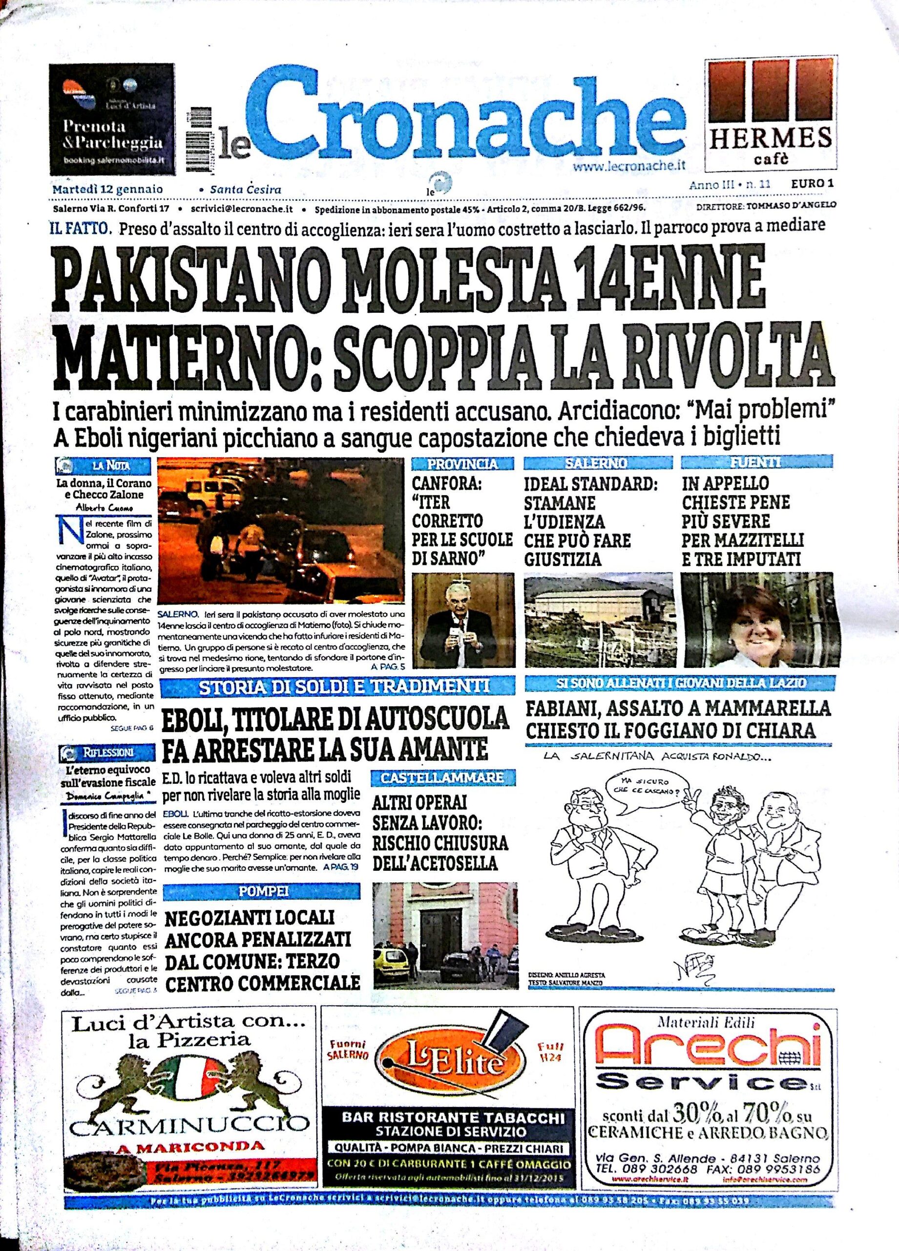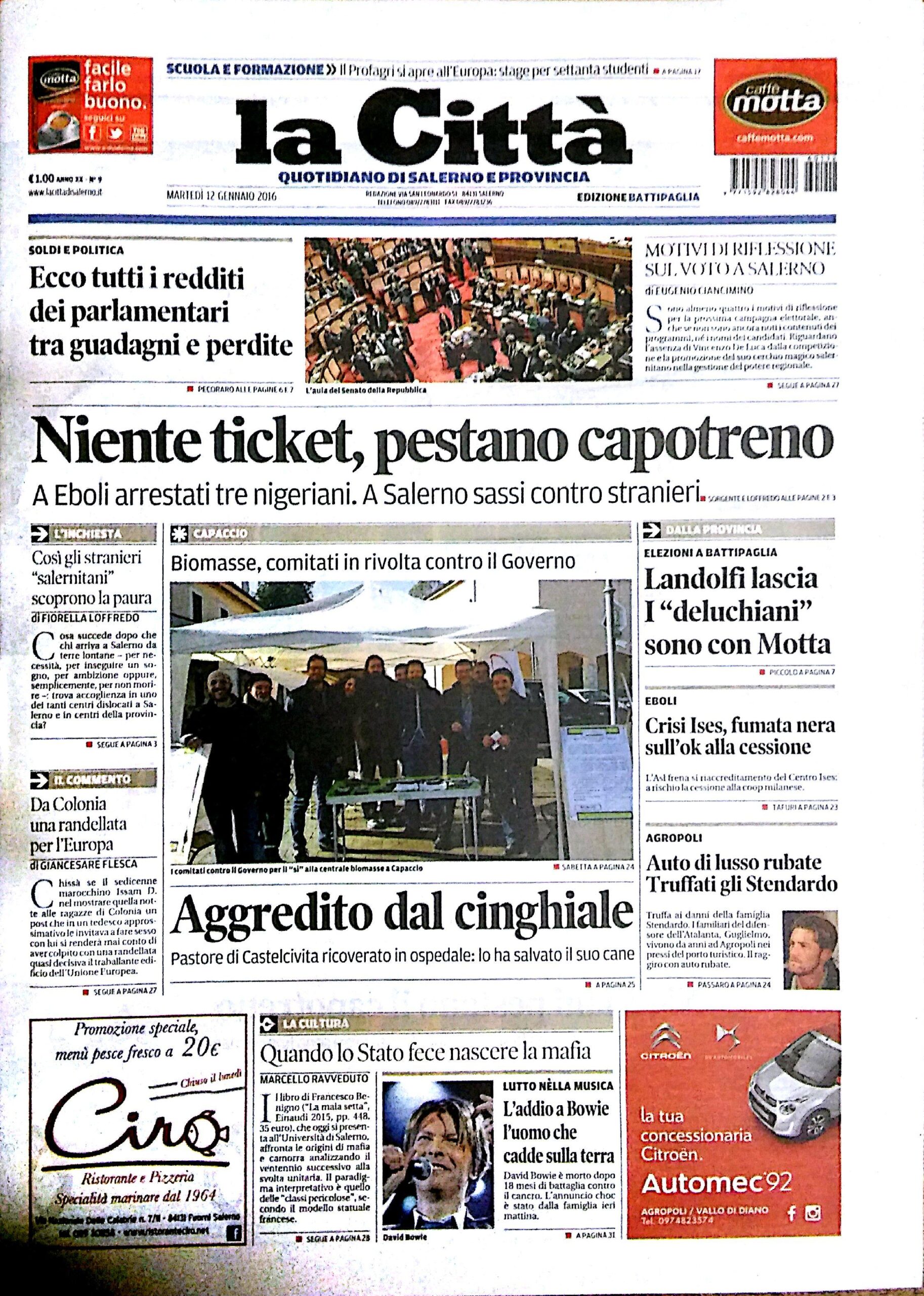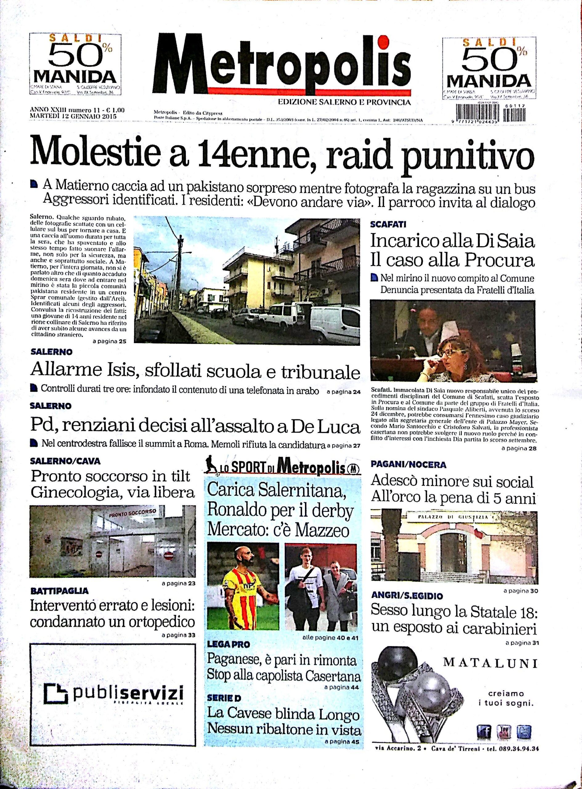 Rassegna stampa del 12 gennaio 2016. Ecco le prime pagine dei quotidiani salernitani oggi in edicola. Clicca in basso per sfogliare Il Mattino, La Città, Le Cronache, Metropolis.