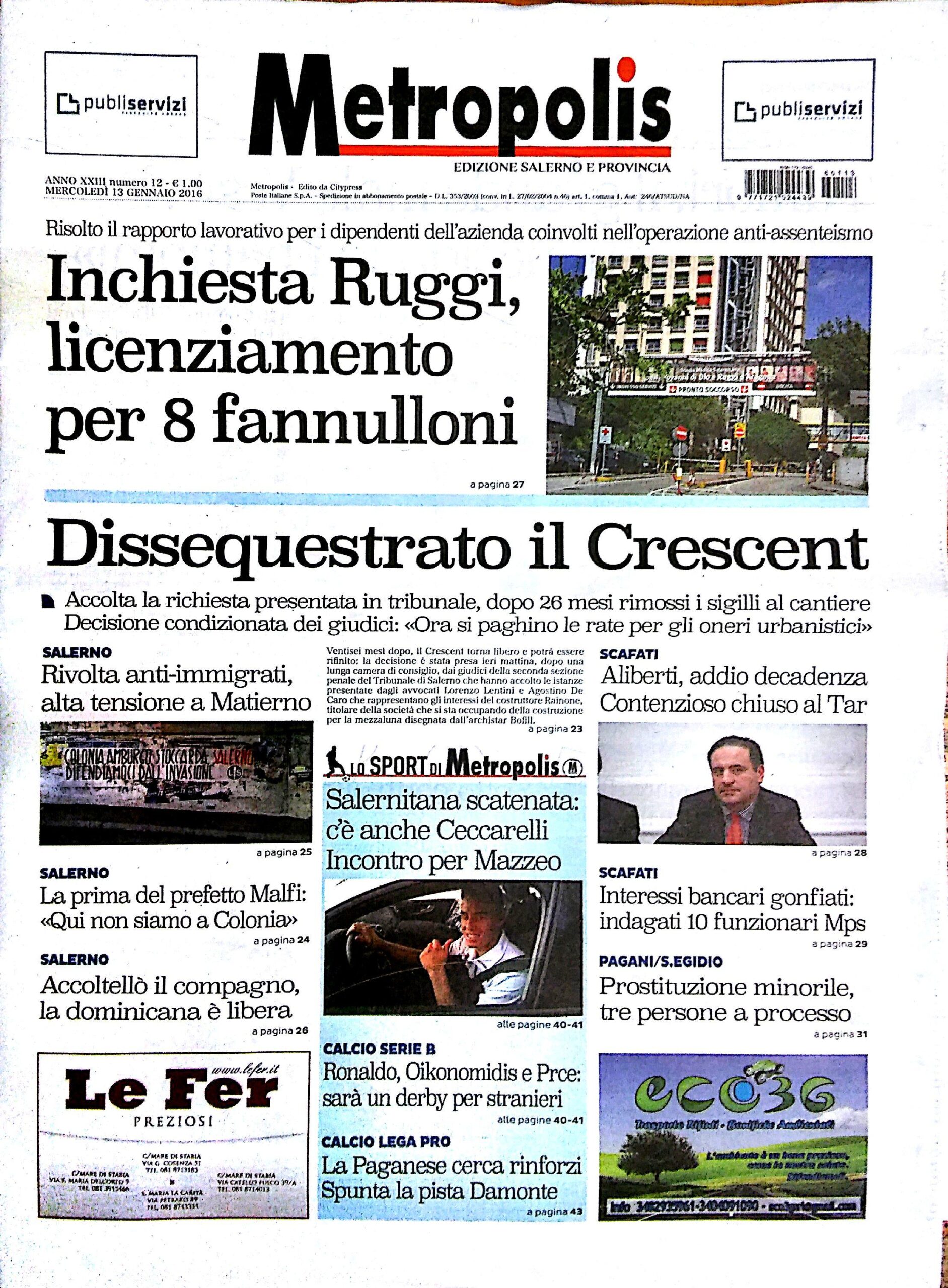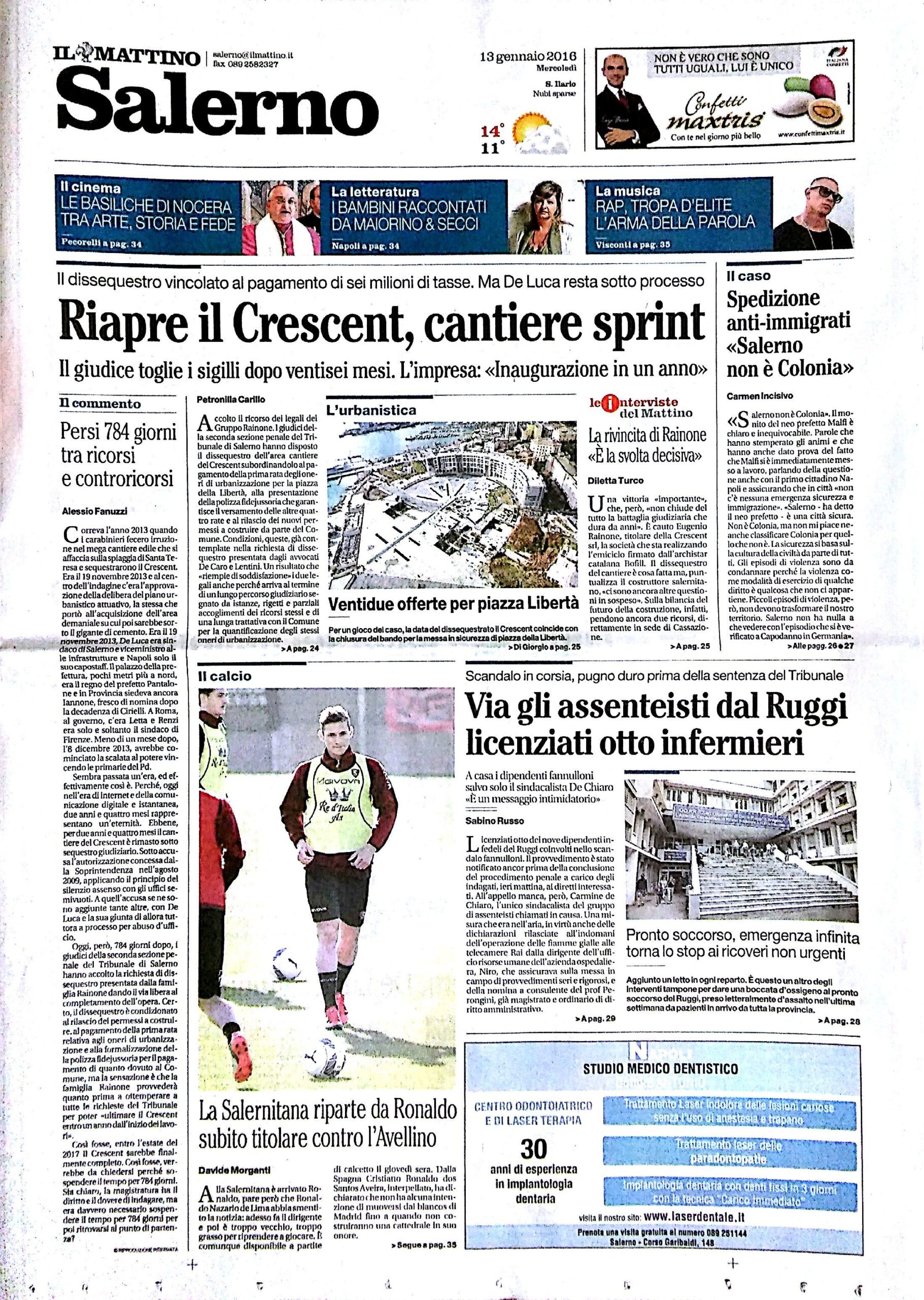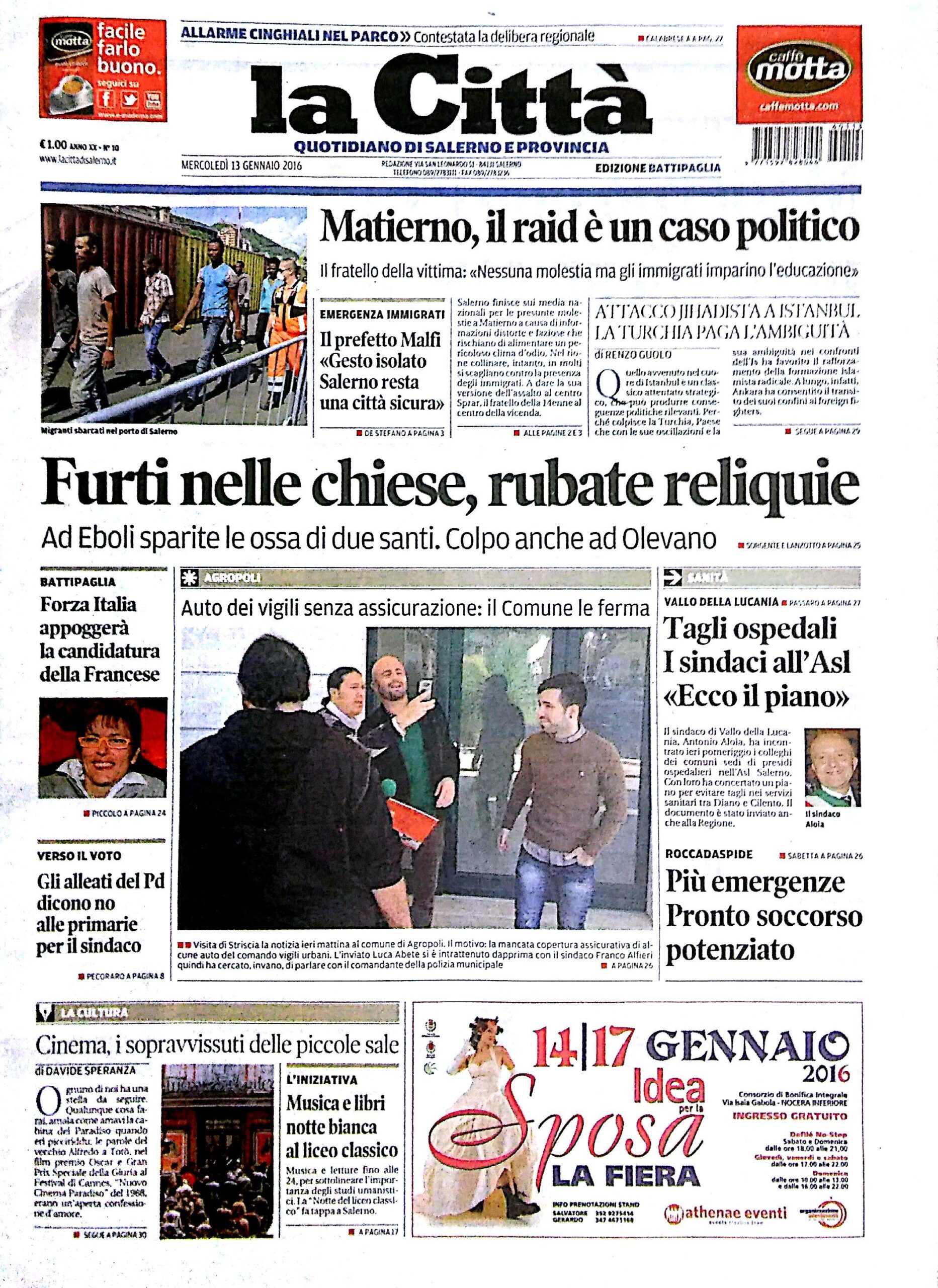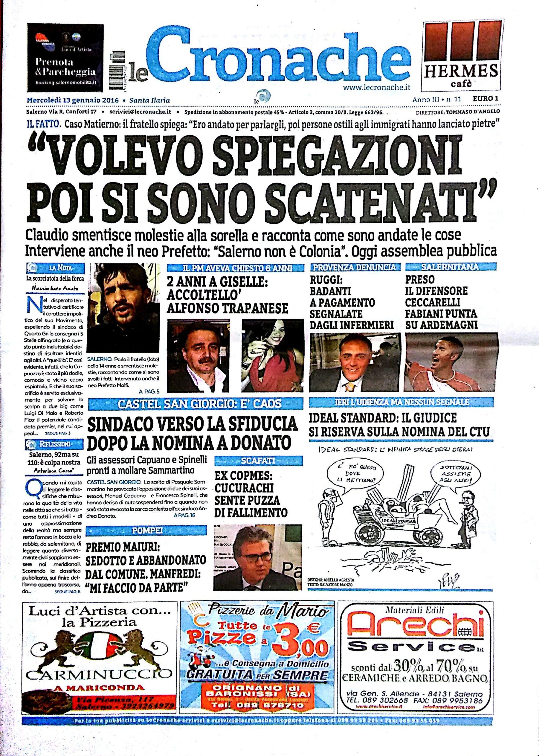 Rassegna stampa del 13 gennaio 2016. Ecco le prime pagine dei quotidiani salernitani oggi in edicola. Clicca in basso per sfogliare Il Mattino, La Città, Le Cronache, Metropolis.