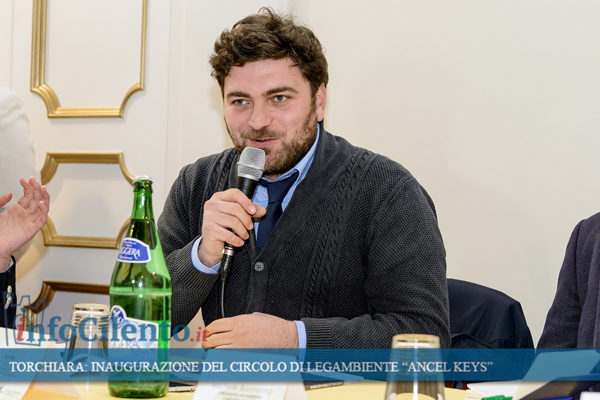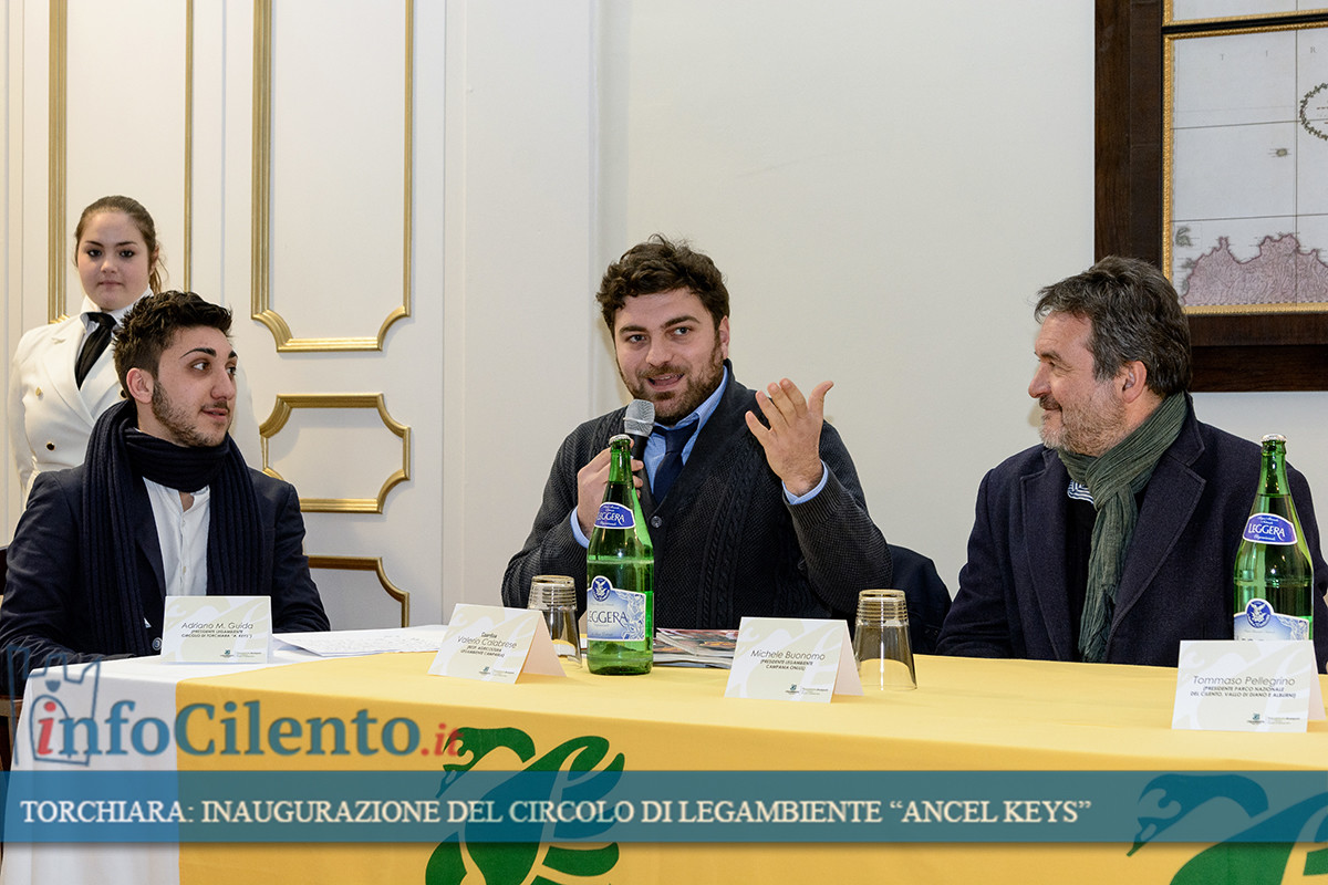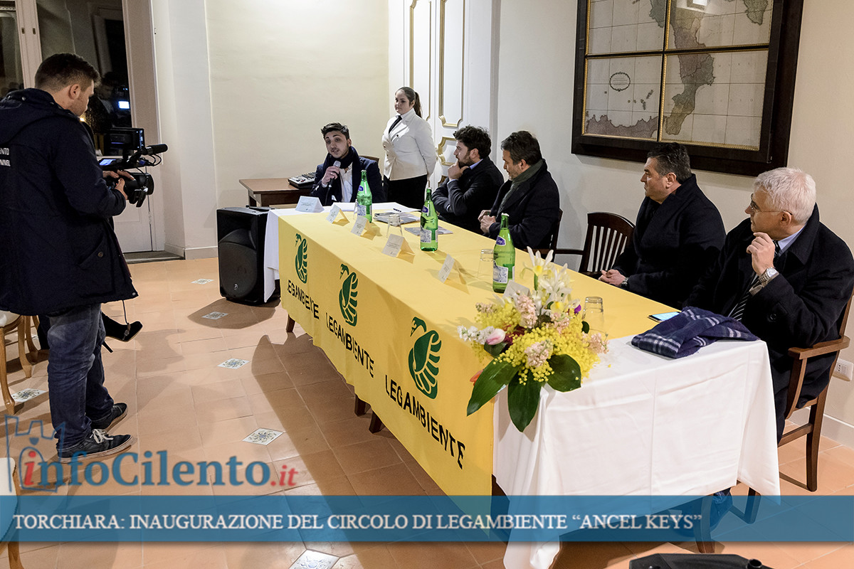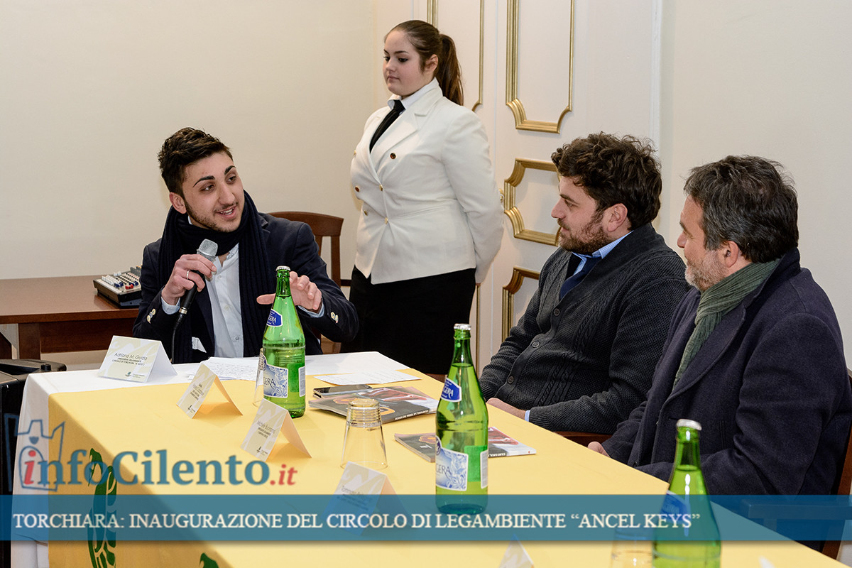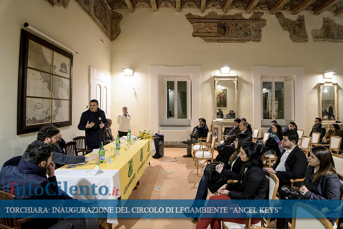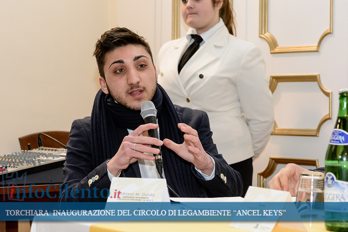 TORCHIARA. Si è tenuto presso il suggestivo e antico Palazzo Baronale De Conciliis, il battesimo del circolo Legambiente di Torchiara intitolato ad Ancel Keys. Il neonato circolo ha già un primato, quello di presidente più giovane d’Italia. Il record se lo aggiudica Adriano Maria Guida che a solo 19 anni si può fregiare di questo importante ruolo. Presenti alla conferenza di presentazione, oltre al giovane presidente, il responsabile agricoltura per Legambiente Campania Valerio Calabrese, il sindaco di Torchiara Massimo Farro, il presidente dell’Unione dei Comuni Franco Alfieri,il presidente di Legambiente Campania Michele Buonomo e il presidente designato del Parco Nazionale del Cilento, Vallo di Diano e Alburni Tommaso Pellegrino.