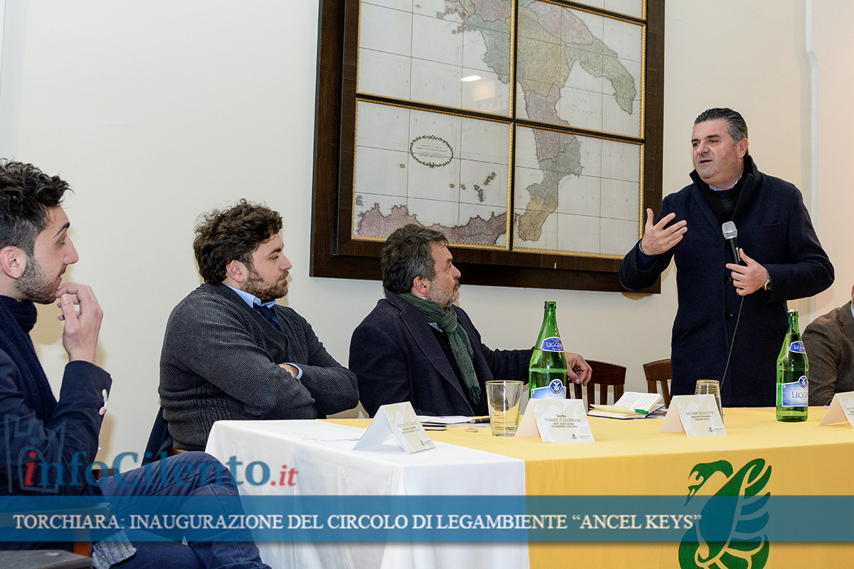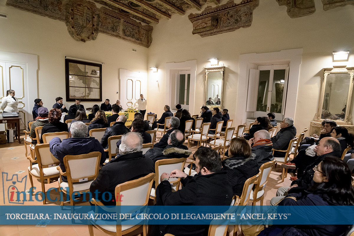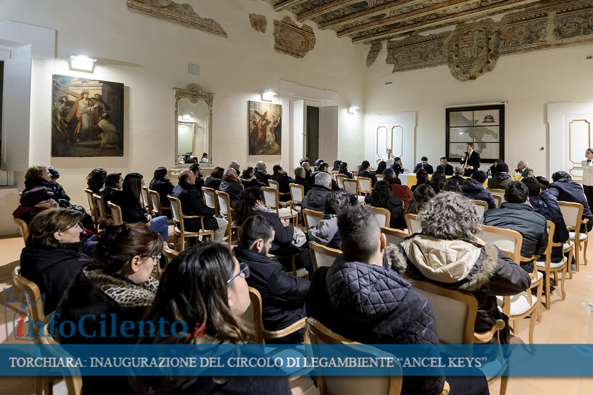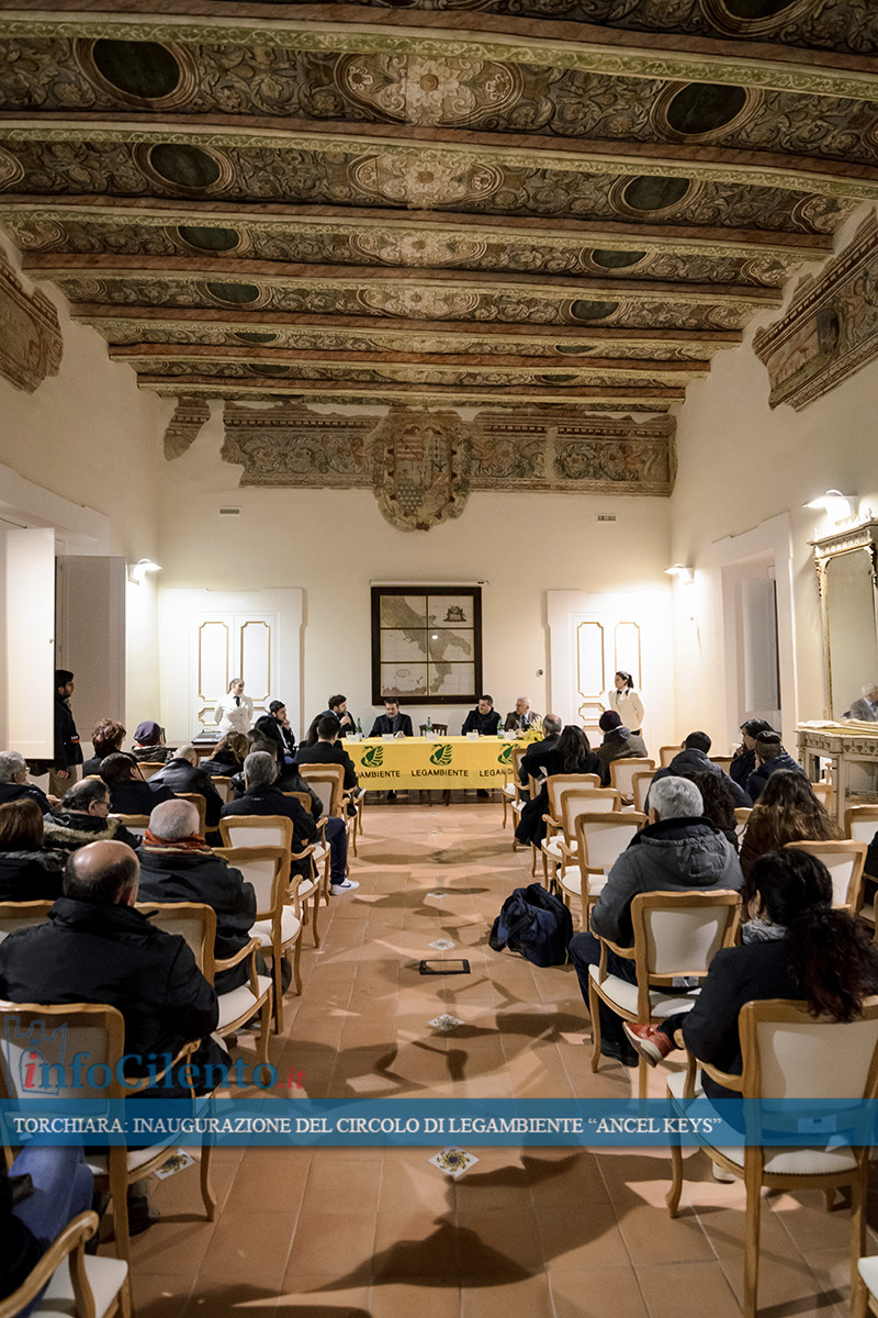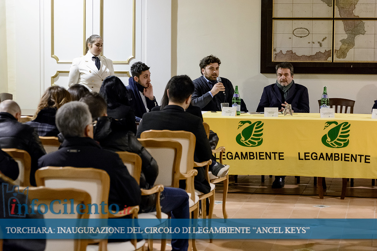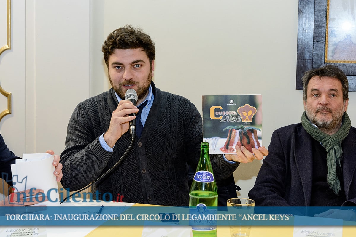 TORCHIARA. Si è tenuto presso il suggestivo e antico Palazzo Baronale De Conciliis, il battesimo del circolo Legambiente di Torchiara intitolato ad Ancel Keys. Il neonato circolo ha già un primato, quello di presidente più giovane d’Italia. Il record se lo aggiudica Adriano Maria Guida che a solo 19 anni si può fregiare di questo importante ruolo. Presenti alla conferenza di presentazione, oltre al giovane presidente, il responsabile agricoltura per Legambiente Campania Valerio Calabrese, il sindaco di Torchiara Massimo Farro, il presidente dell’Unione dei Comuni Franco Alfieri,il presidente di Legambiente Campania Michele Buonomo e il presidente designato del Parco Nazionale del Cilento, Vallo di Diano e Alburni Tommaso Pellegrino.