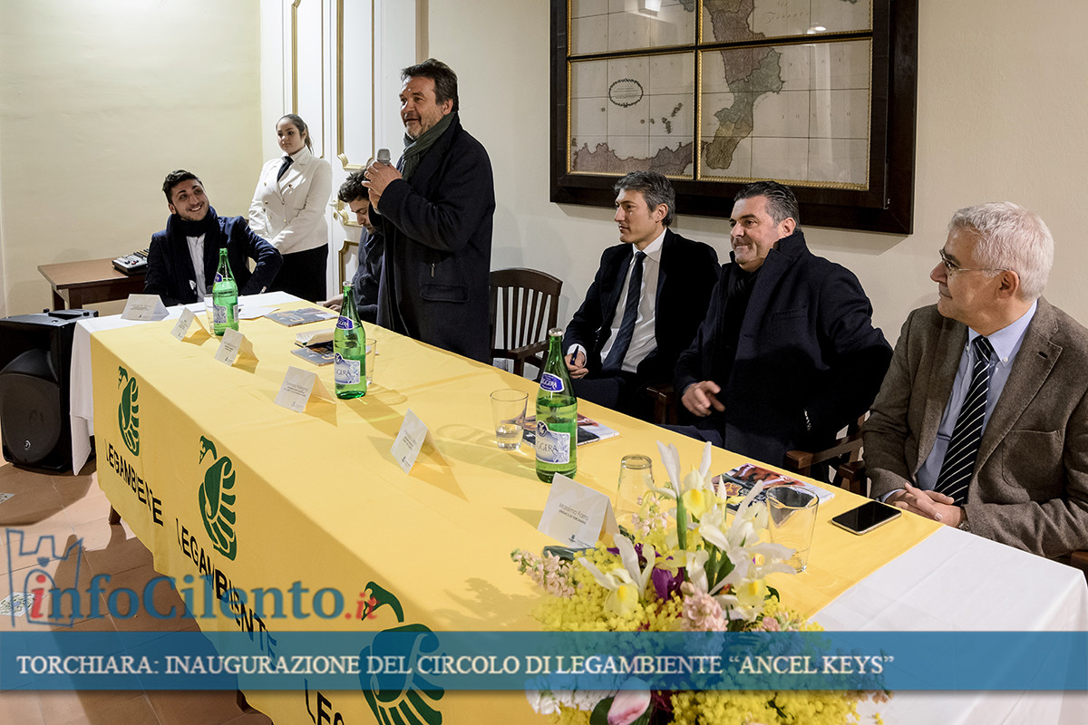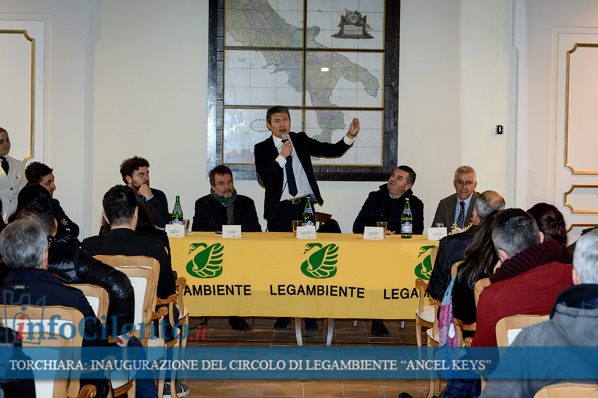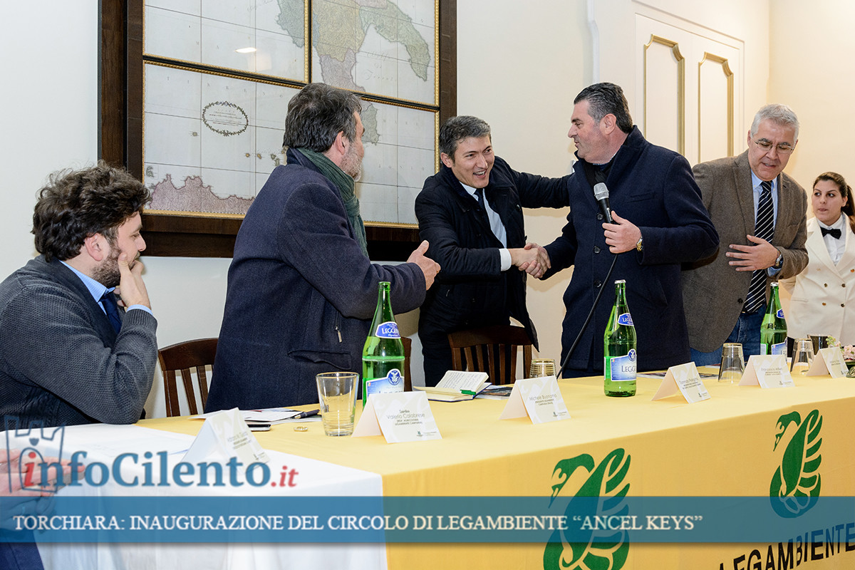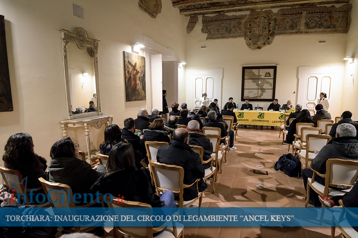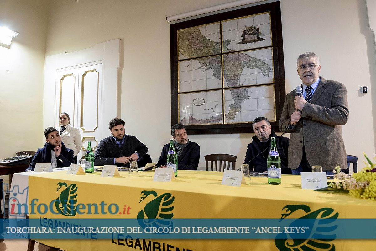 TORCHIARA. Si è tenuto presso il suggestivo e antico Palazzo Baronale De Conciliis, il battesimo del circolo Legambiente di Torchiara intitolato ad Ancel Keys. Il neonato circolo ha già un primato, quello di presidente più giovane d’Italia. Il record se lo aggiudica Adriano Maria Guida che a solo 19 anni si può fregiare di questo importante ruolo. Presenti alla conferenza di presentazione, oltre al giovane presidente, il responsabile agricoltura per Legambiente Campania Valerio Calabrese, il sindaco di Torchiara Massimo Farro, il presidente dell’Unione dei Comuni Franco Alfieri,il presidente di Legambiente Campania Michele Buonomo e il presidente designato del Parco Nazionale del Cilento, Vallo di Diano e Alburni Tommaso Pellegrino.