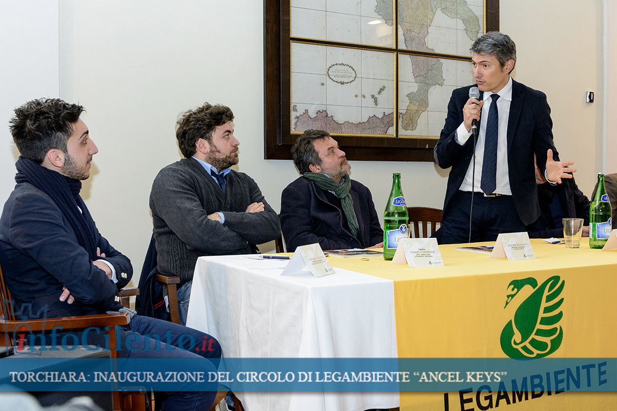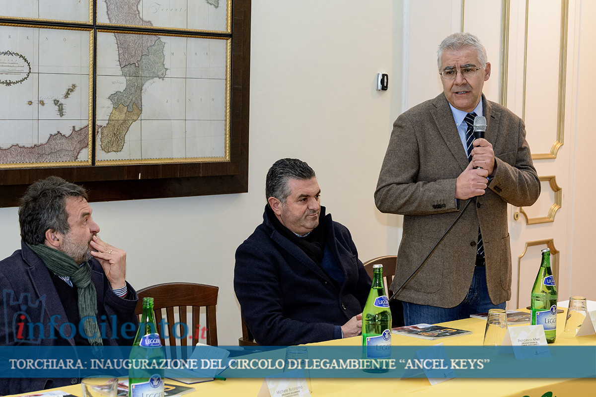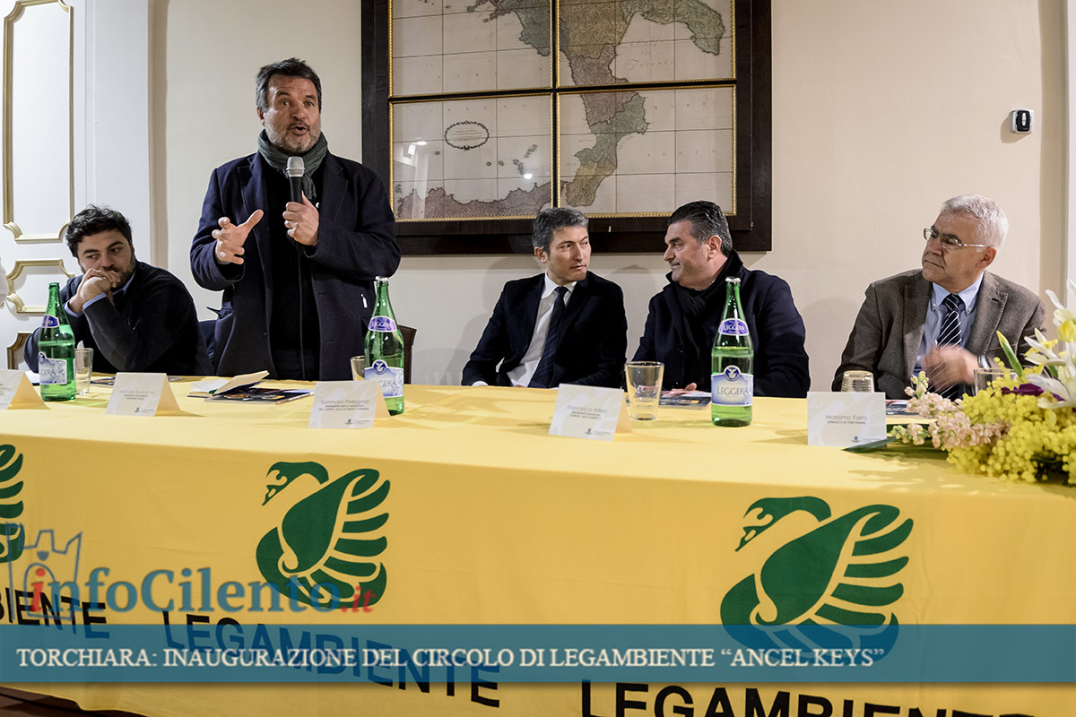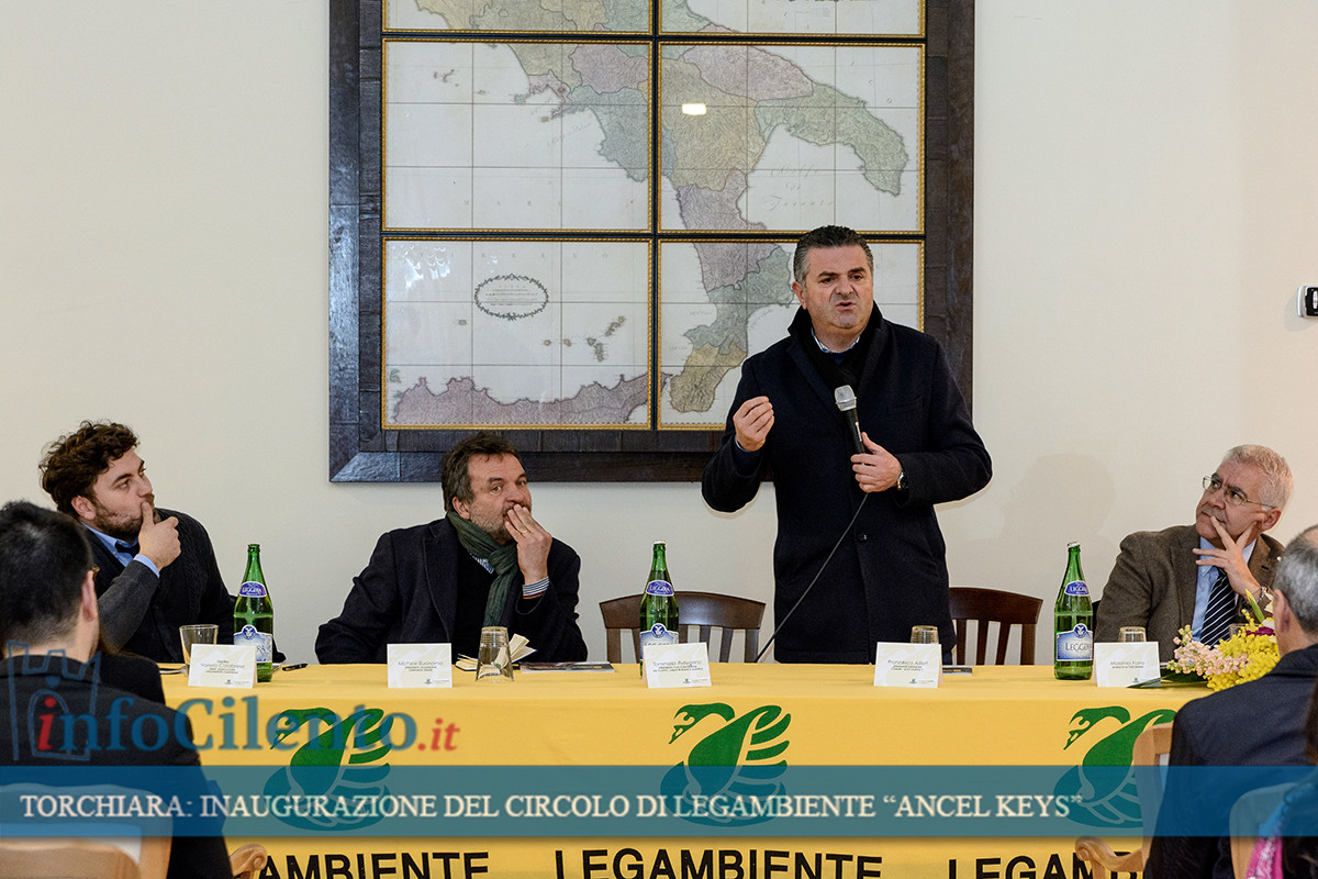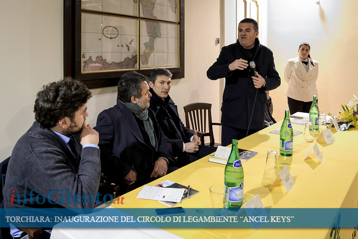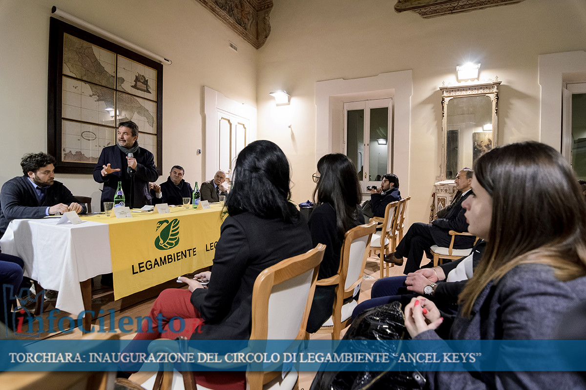 TORCHIARA. Si è tenuto presso il suggestivo e antico Palazzo Baronale De Conciliis, il battesimo del circolo Legambiente di Torchiara intitolato ad Ancel Keys. Il neonato circolo ha già un primato, quello di presidente più giovane d’Italia. Il record se lo aggiudica Adriano Maria Guida che a solo 19 anni si può fregiare di questo importante ruolo. Presenti alla conferenza di presentazione, oltre al giovane presidente, il responsabile agricoltura per Legambiente Campania Valerio Calabrese, il sindaco di Torchiara Massimo Farro, il presidente dell’Unione dei Comuni Franco Alfieri,il presidente di Legambiente Campania Michele Buonomo e il presidente designato del Parco Nazionale del Cilento, Vallo di Diano e Alburni Tommaso Pellegrino.