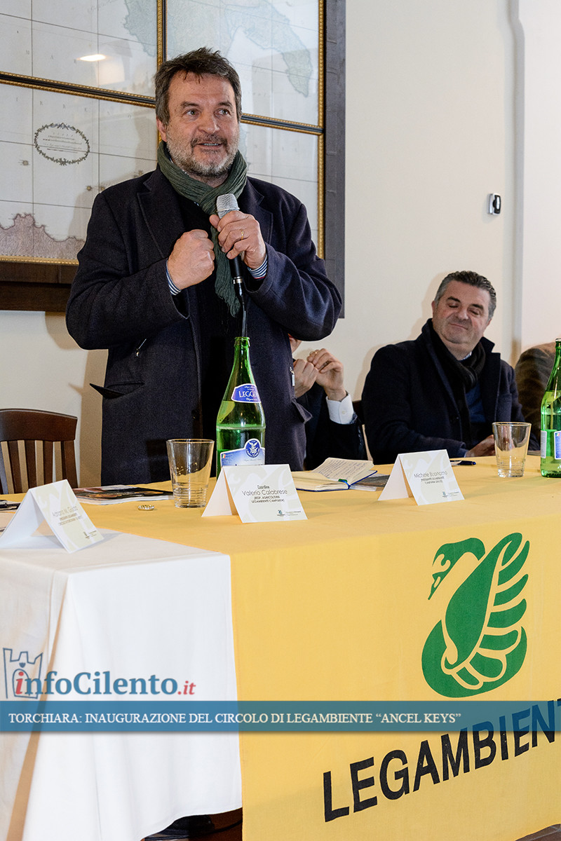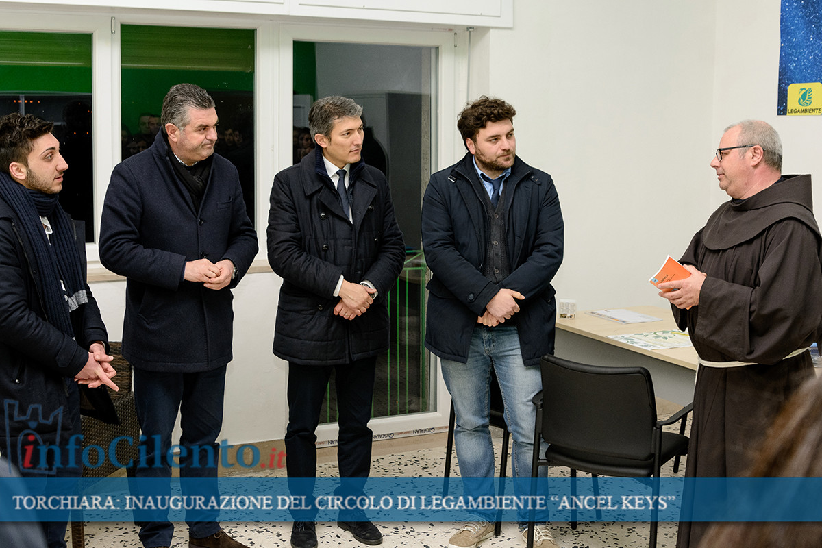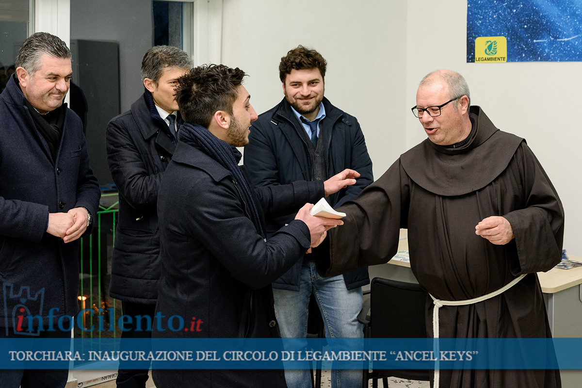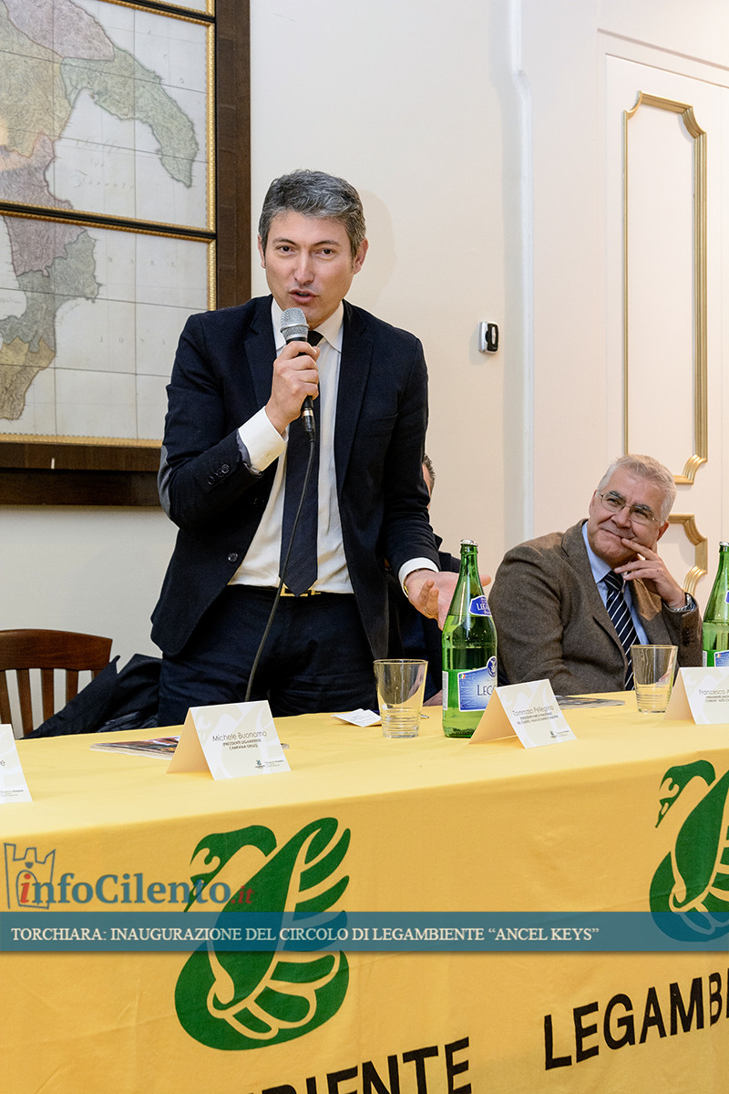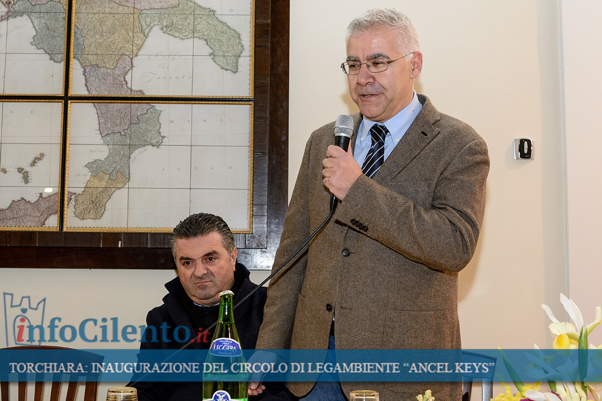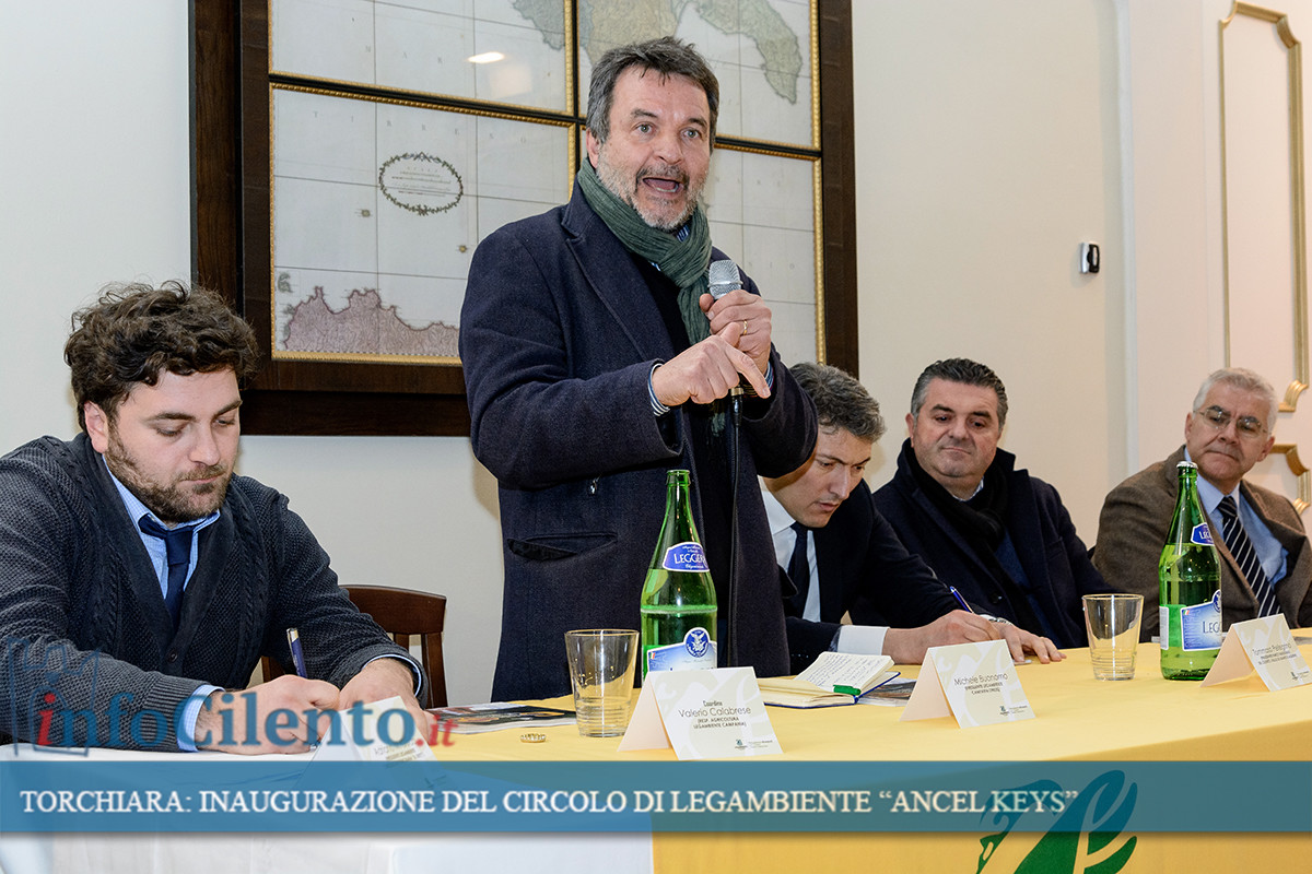 TORCHIARA. Si è tenuto presso il suggestivo e antico Palazzo Baronale De Conciliis, il battesimo del circolo Legambiente di Torchiara intitolato ad Ancel Keys. Il neonato circolo ha già un primato, quello di presidente più giovane d’Italia. Il record se lo aggiudica Adriano Maria Guida che a solo 19 anni si può fregiare di questo importante ruolo. Presenti alla conferenza di presentazione, oltre al giovane presidente, il responsabile agricoltura per Legambiente Campania Valerio Calabrese, il sindaco di Torchiara Massimo Farro, il presidente dell’Unione dei Comuni Franco Alfieri,il presidente di Legambiente Campania Michele Buonomo e il presidente designato del Parco Nazionale del Cilento, Vallo di Diano e Alburni Tommaso Pellegrino.