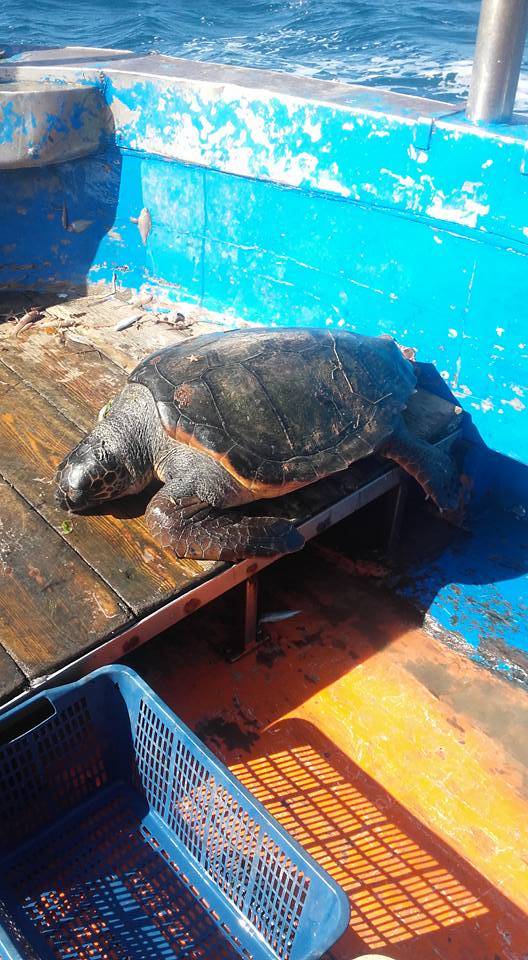 La tartaruga era finita sull’imbarcazione insieme ad altro pescato ma è stata restituita al mare.