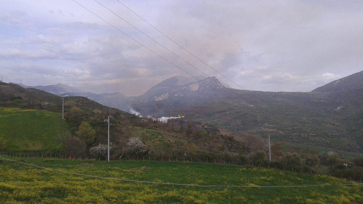 Il fuoco è divampato in due aree del territorio. Immediato l’intervento di un canadair