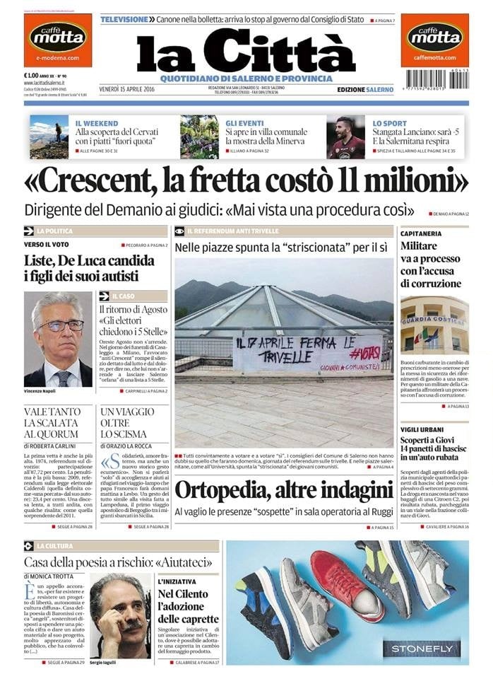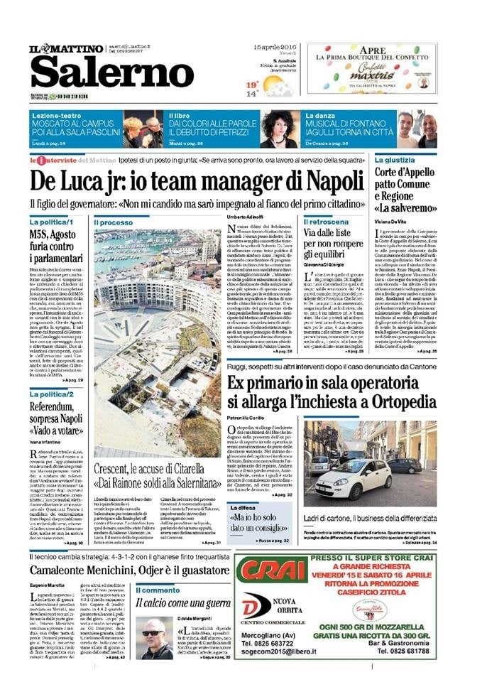 Rassegna stampa del 13 aprile 2016. Ecco le prime pagine dei quotidiani salernitani oggi in edicola. Clicca in basso per sfogliare Il Mattino, La Città, Metropolis.