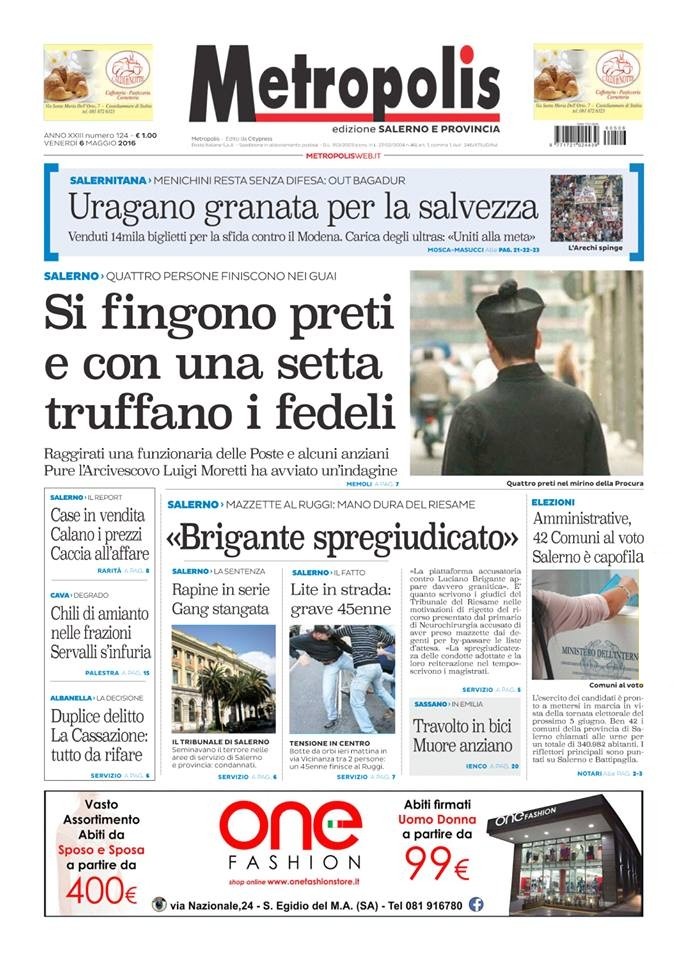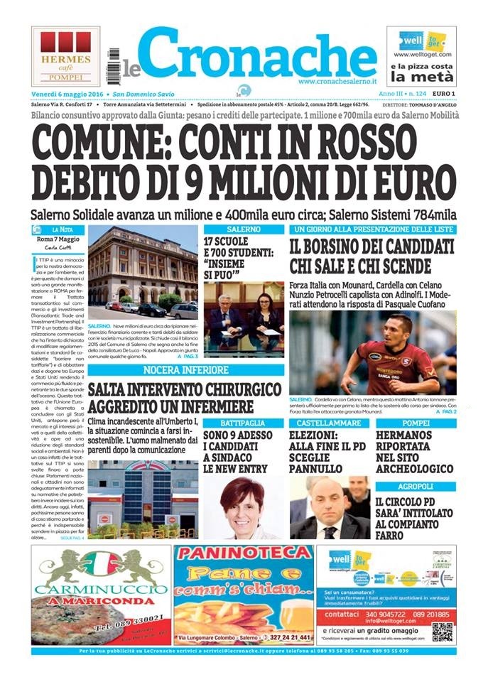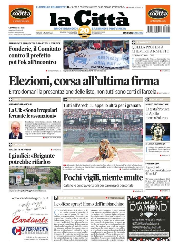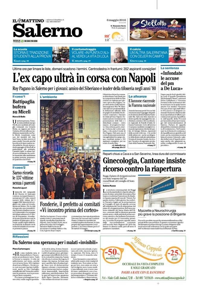 Rassegna stampa del 6 maggio 2016. Ecco le prime pagine dei quotidiani salernitani oggi in edicola. Clicca in basso per sfogliare Il Mattino, La Città, Le Cronache, Metropolis.
