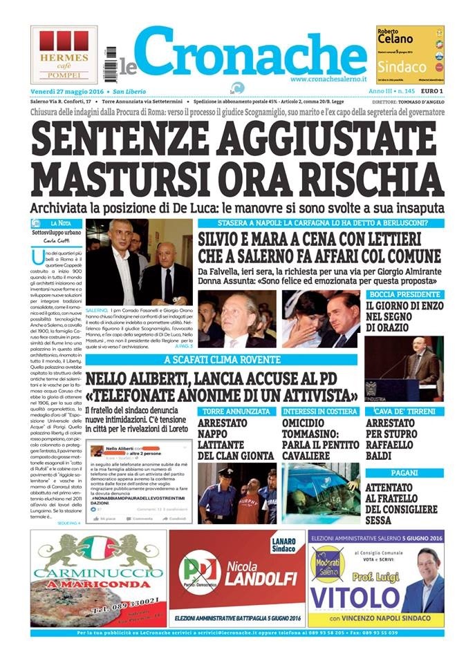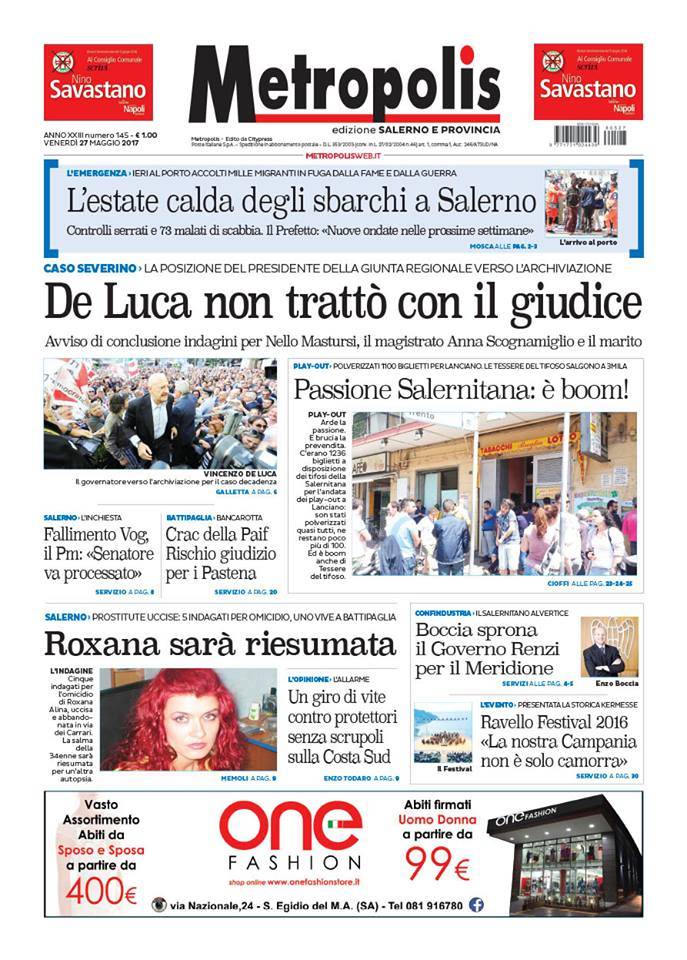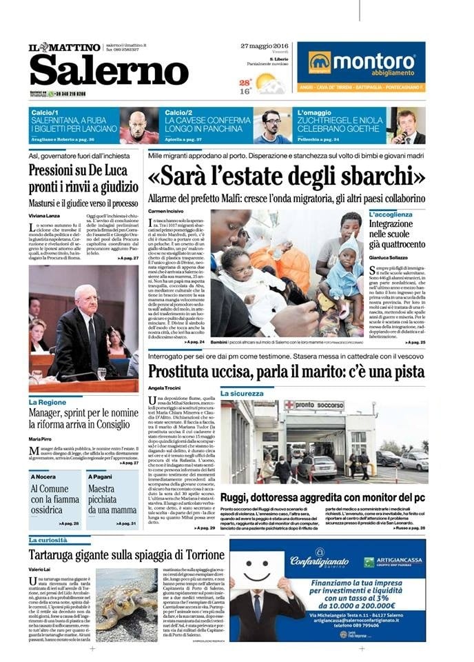 Rassegna stampa del 27 maggio 2016. Ecco le prime pagine dei quotidiani salernitani oggi in edicola. Clicca in basso per sfogliare Il Mattino, La Città, Le Cronache, Metropolis.