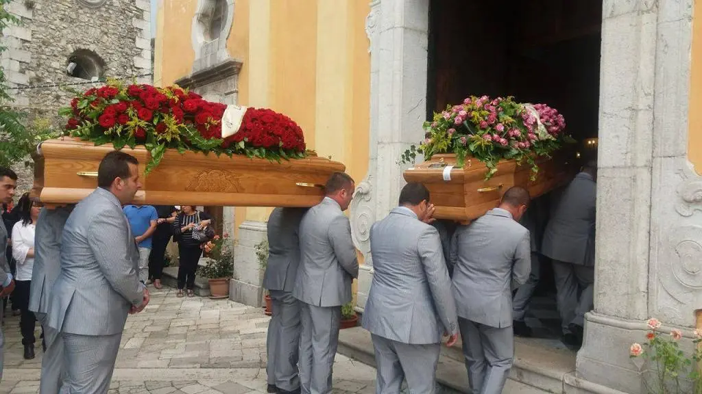 Ultimo salute alle due persone decedute a seguito dello scoppio di una bombola del gas. In paese lutto cittadino e bandiere a mezz’asta.