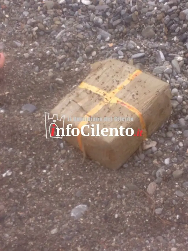 Il ritrovamento è avvenuto sul litorale di Villammare, a pochi metri dal confine con Sapri.  Sul posto anche una imbarcazione dei carabinieri e dei sub per ispezionare l’intero litorale. Probabile che il plico sia stato abbandonato a largo, quindi trasportato dalla corrente sul litorale.