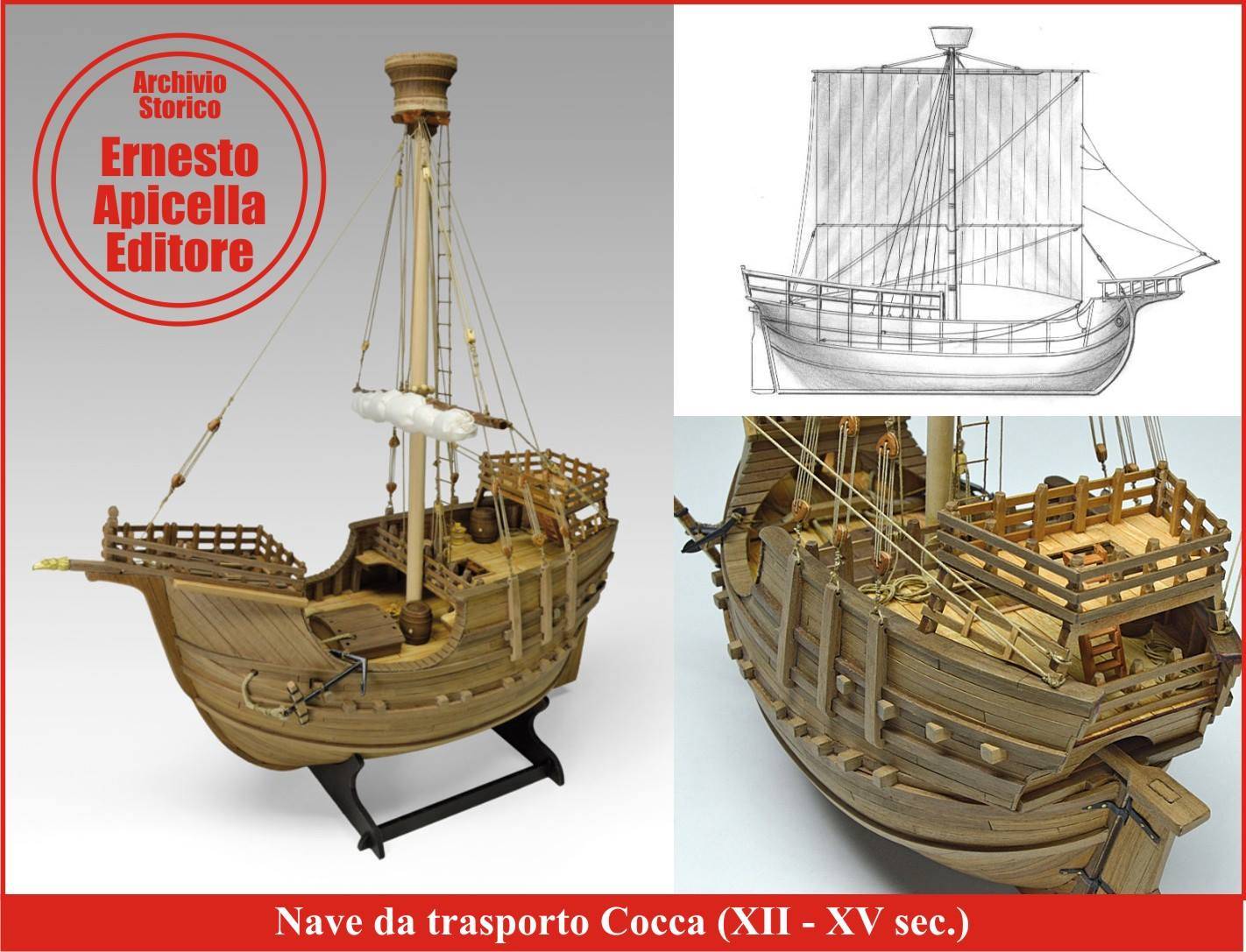 Dal XII al XV secolo la nave commerciale per eccellenza delle marinerie europee era la Cocca, denominata nelle sue varie evoluzioni Anseatica, Veneziana, Mediterranea. La Cocca nasceva nei mari del nord Europa, probabilmente, intorno al XII secolo. Fu veliero mercantile e militare nello stesso tempo, non esistendo allora una netta distinzione fra i due tipi di nave. Essa era una nave tonda ed aveva forma affilata ad entrambe le estremità e la poppa era simile alla prua, non a specchio. Possedeva un solo albero con una sola vela, quadra e di grandi dimensioni. Era inoltre caratterizzata dalla presenza di due costruzioni, che non erano parte integrante dello scafo ma a esso sovrapposte: i castelli. Nati per facilitare la difesa della nave e l’attacco alle unità nemiche, questi erano formati da due piattaforme, sporgenti oltre i fianchi della nave e protetti da robusti parapetti. Nel XIV secolo la Cocca arrivò ad avere sino a quattro alberi, attrezzati sia con vele quadre sia con vele latine; aveva una lunghezza massima di 30 metri. Questo tipo di nave poteva trasportare circa 150t di carico e veniva manovrata da un equipaggio di venti o trenta uomini; poteva imbarcare armi da fuoco pesanti. L’evoluzione finale della Cocca porterà alla nascita della Caracca. Cito due documenti che menzionano la Cocca come nave da trasporto della Marineria Genovese: “Anno 1370, Berenguer Sespujades, Corsaro Catalano, è perseguitato dal Re Pietro d’Aragona con l’accusa di avere catturato nelle bocche di Bonifacio una Cocca genovese con un carico di vino. Intercedono a suo favore i più alti ufficiali del Regno di Sardegna: si sostiene che la sua azione non sia stata dettata da interesse personale, bensì dal desiderio di alleviare le ristrettezze in cui versa Alghero”. “Anno 1404, Niccolò Di Moneglia, Corsaro di Genova, proprietario di una grande Cocca viene incaricato dal Boucicaut, governatore di Genova per i francesi, di condurre in Levante la guerra di corsa ai danni delle navi veneziane. Sulla sua nave compare lo stendardo di Francesco da Carrara. Attacca la Cocca del veneziano Basilio Tirapella, che sta navigando di conserva con una Cocca genovese lungo le coste della Morea; si appropria , poi, tra Cerigo (Kithira) e Capo Maleo, di altre 3 navi”.