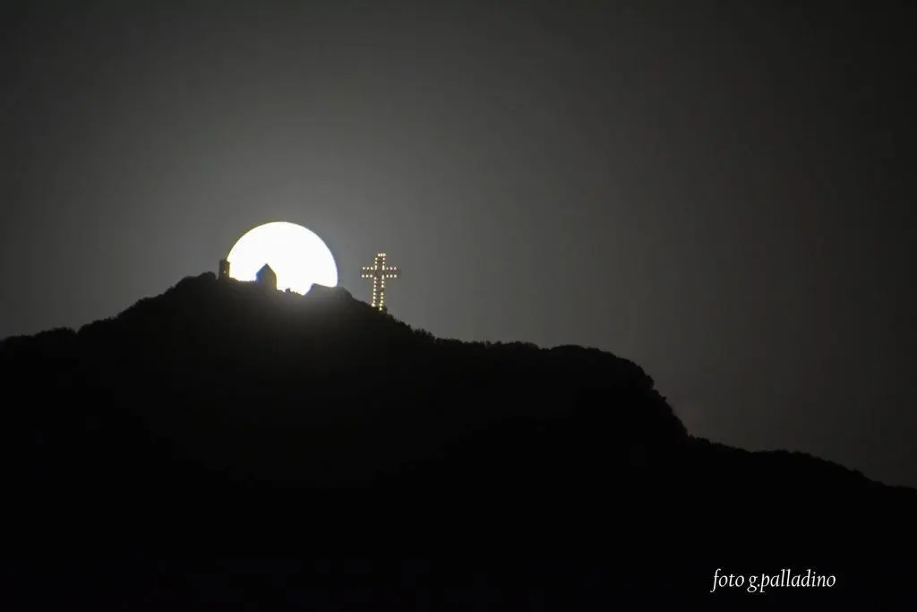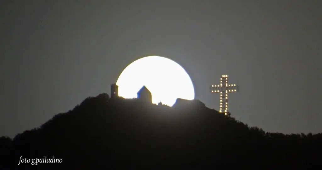 VALLO DELLA LUCANIA. Non รจ uno scatto come tanti. Ci sono voluti giorni di appostamenti per riuscire ad immortalare la luna che spunta dal Sacro Monte di Novi Velia, proprio dietro il Santuario eย la Croce. Lo fotografiaย รจ stata realizzataย dal fotografo Giuseppe Palladino dalla sua abitazione di Vallo della Lucania. Riuscire nellโintento, dopo ore passate ad attendere il momento giusto,ย non รจ stato semplice. Non capita tutti i giorni un cosรฌ straordinario allineamento dellโastro con ilย Monte Sacro ma alla fine il risultato รจ stato eccezionale. Lo scatto รจ subito divenuto virale: centinaia le condivisioni, ancora di piรน i โmi piaceโ sui social.