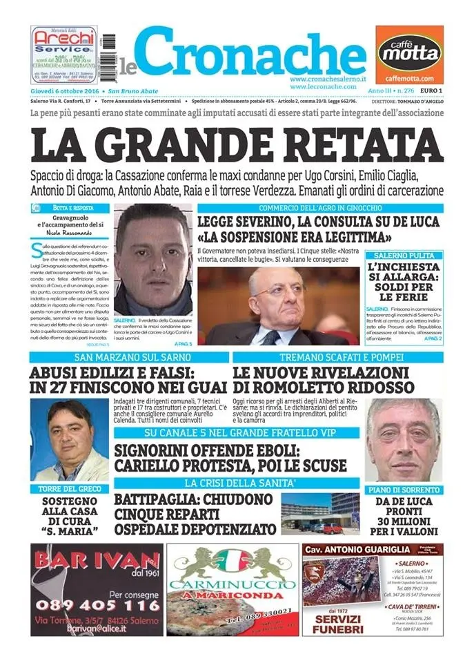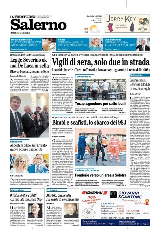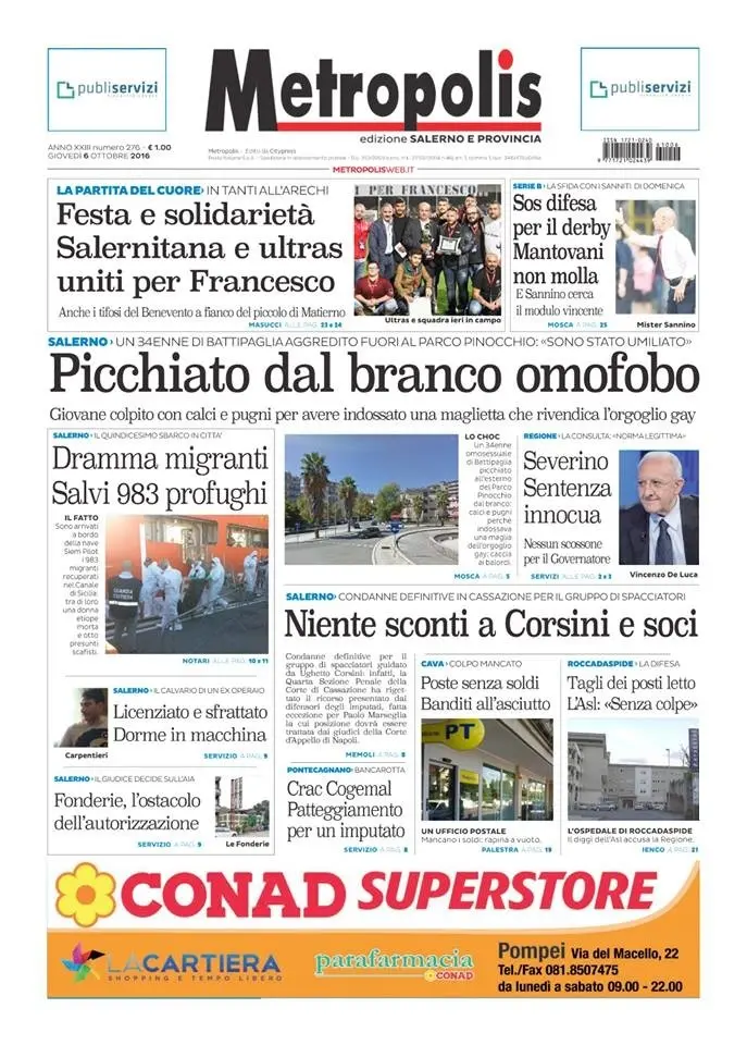 Rassegna stampa del 6 ottobre 2016. Ecco le prime pagine dei quotidiani salernitani oggi in edicola. Clicca in basso per sfogliare il Mattino, Cronache e Metropolis.