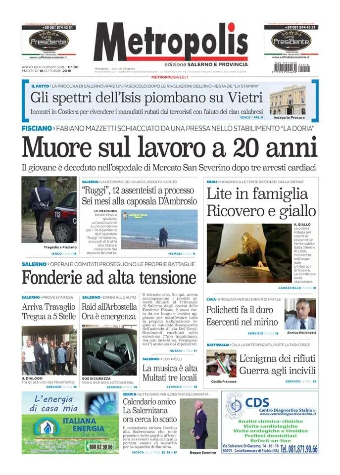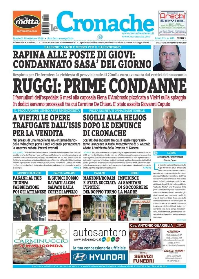 Ecco la rassegna stampa dei principali quotidiani salernitani in edicola: