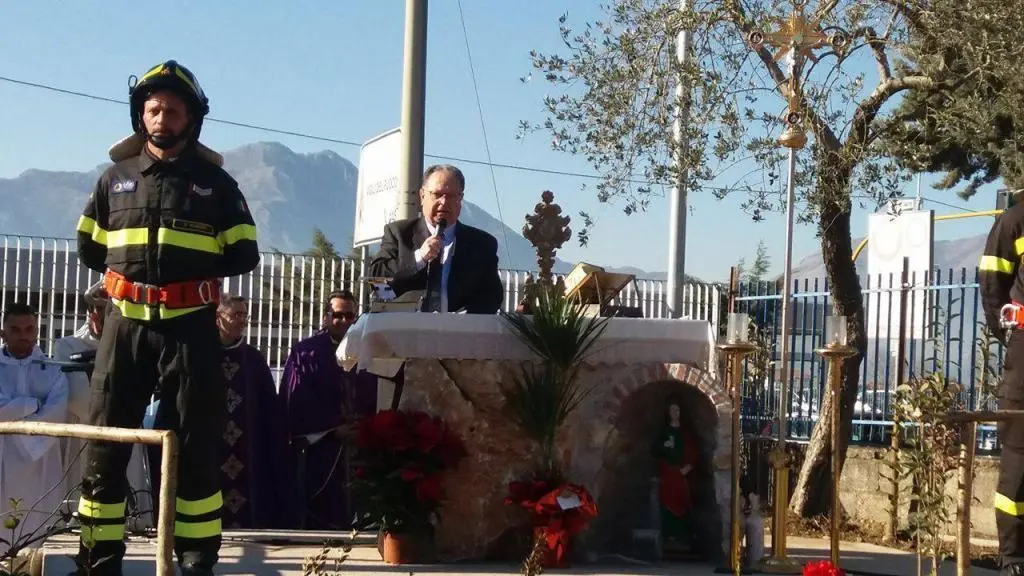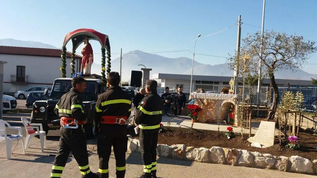 Presenti alla cerimonia, dell’avvenuta ristrutturazione, i vertici regionali e provinciali, le numerose autorità civili e militari, i cittadini ed i rappresentanti del mondo del volontariato. Dopo la Santa Messa, concelebrata da don Luciano La Peruta, don Gabriele Petroccelli e don Franco Maltempo, sono stati benedetti i mezzi ed i locali. L’immagine sacra della Santa Protettrice dei Caschi Rossi, Santa Barbara, per l’occasione, è stata trasportata dalla chiesa della SS Trinità nello spiazzale della caserma.