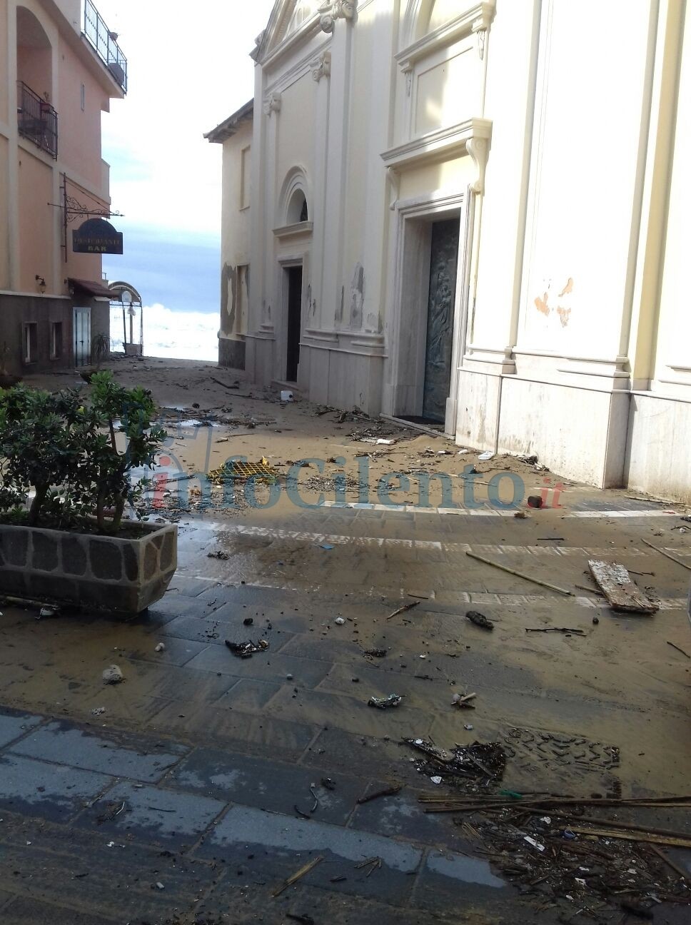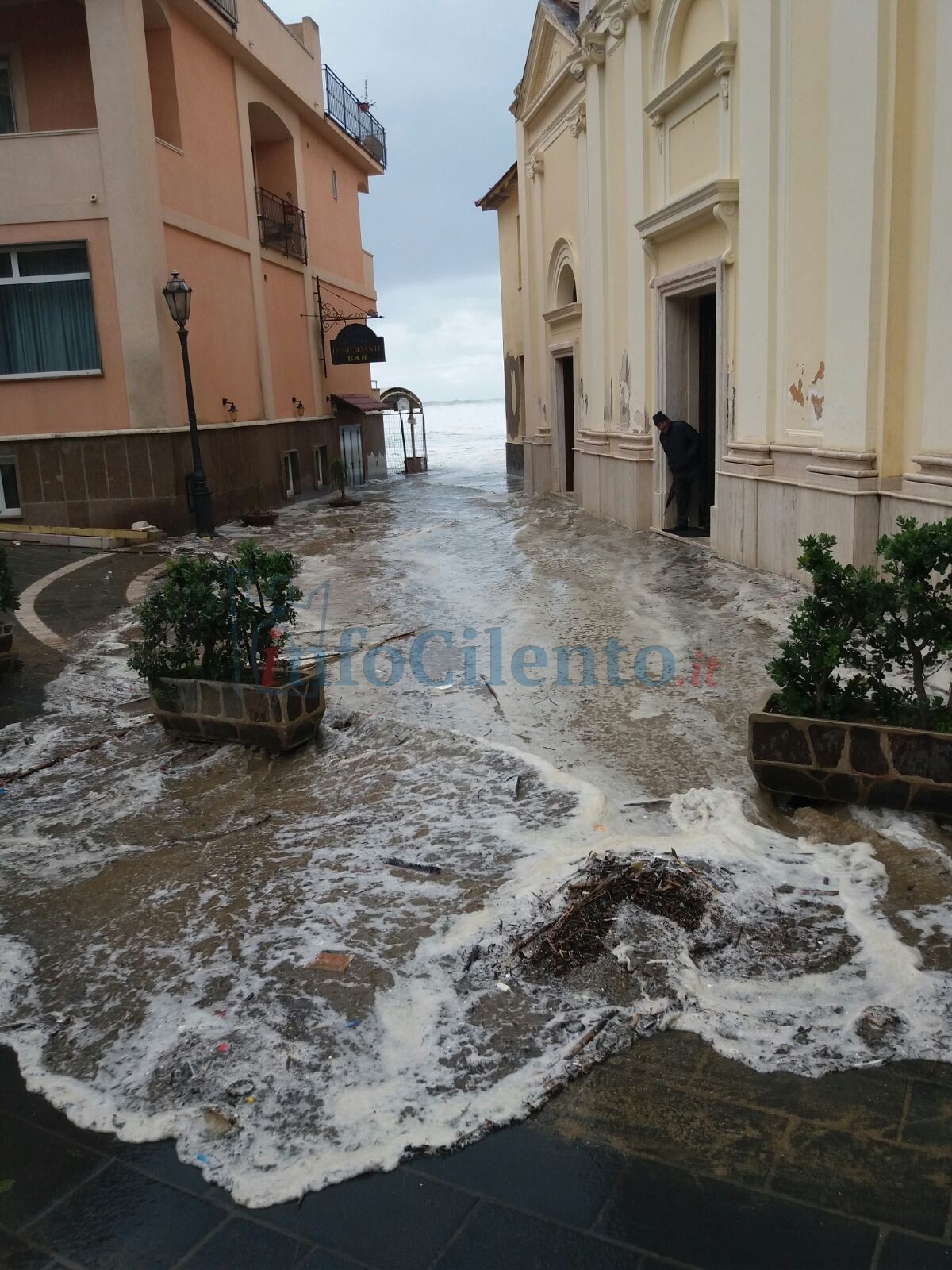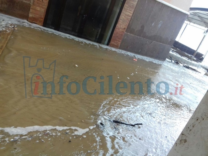Notevoli, invece, i problemi a Santa Maria di Castellabate. L’acqua ha raggiunto il Santuario di Santa Maria a Mare e l’Hotel Sonia trasportando con sé sabbia e detriti. Completamente invase le stradine del centro costiero con l’acqua che è entrata fin dentro la chiesa e a struttura ricettiva.