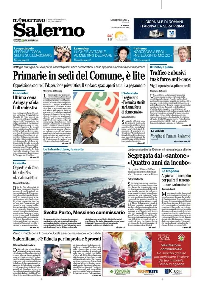 Ecco la rassegna stampa dei principali quotidiani salernitani in edicola: