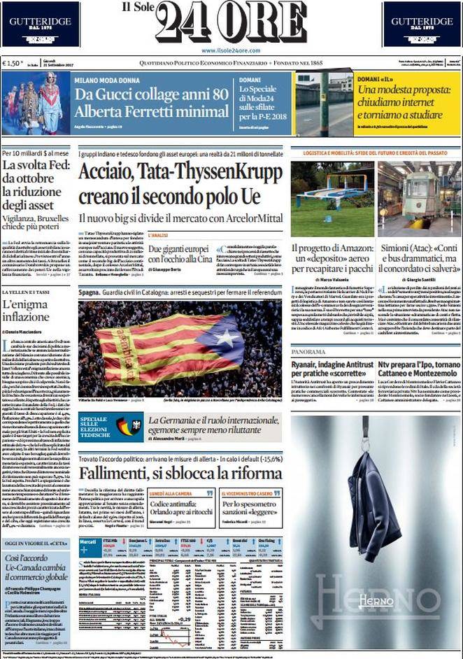 Ecco le prime pagine dei quotidiani nazionali e locali oggi in edicola