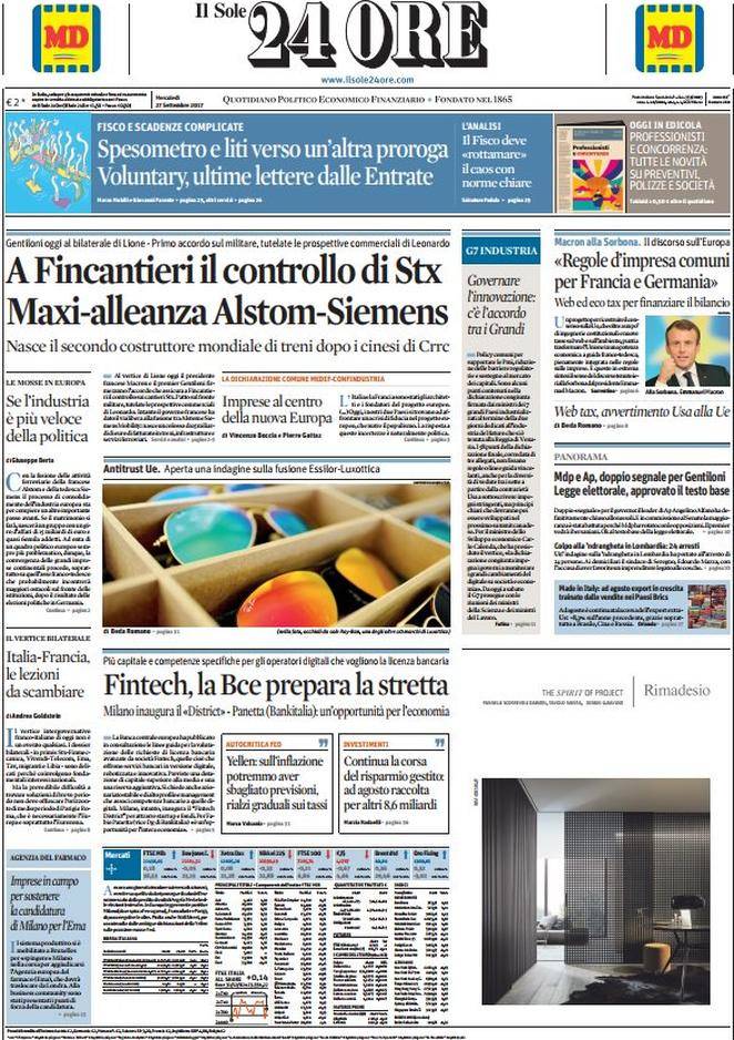 Rassegna stampa del 27 settembre 2017