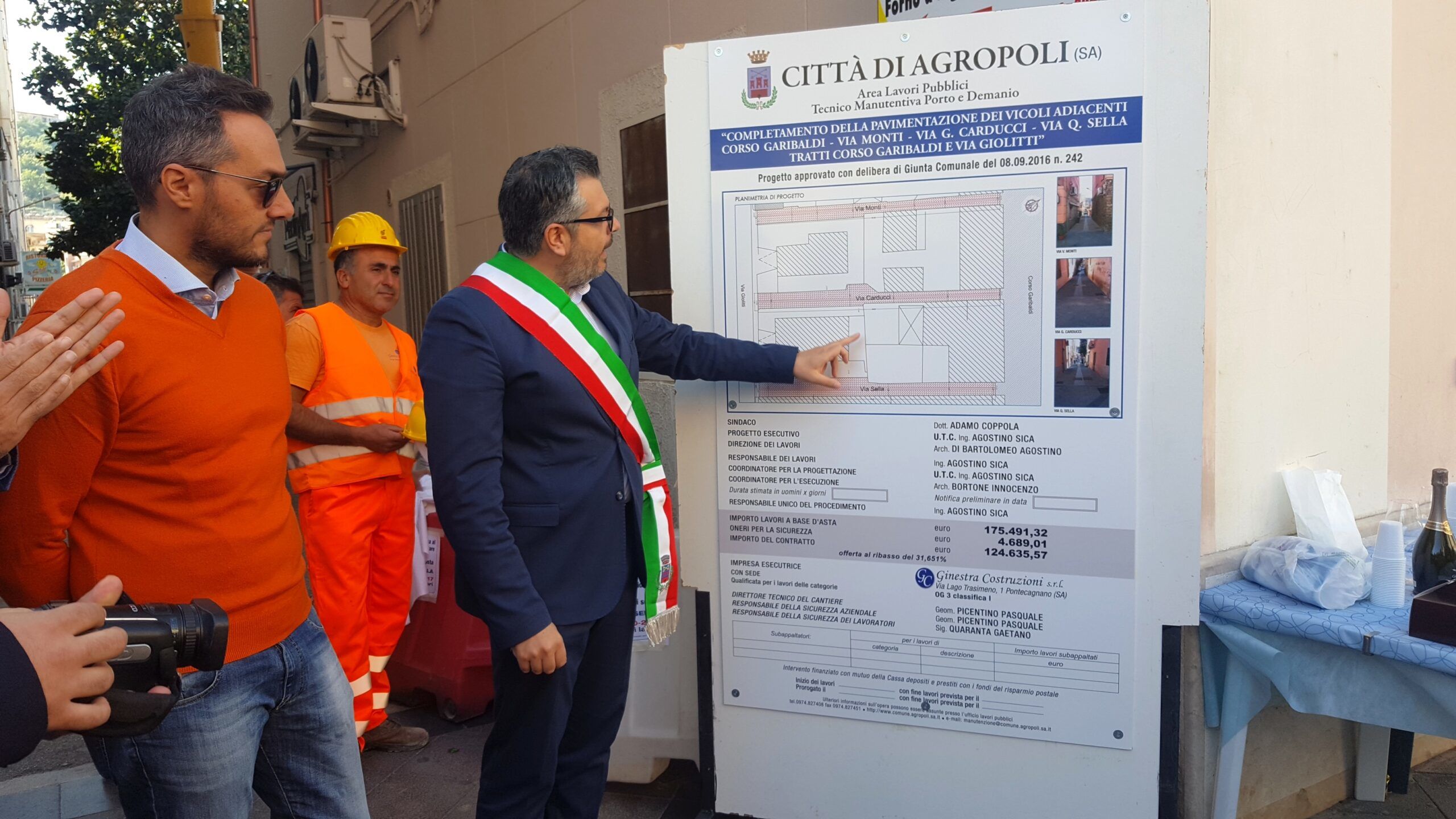 Si è svolta questa mattina, in via Quintino Sella, ad Agropoli, la cerimonia di inizio dei lavori di completamento della pavimentazione dei vicoli adiacenti Corso Garibaldi.