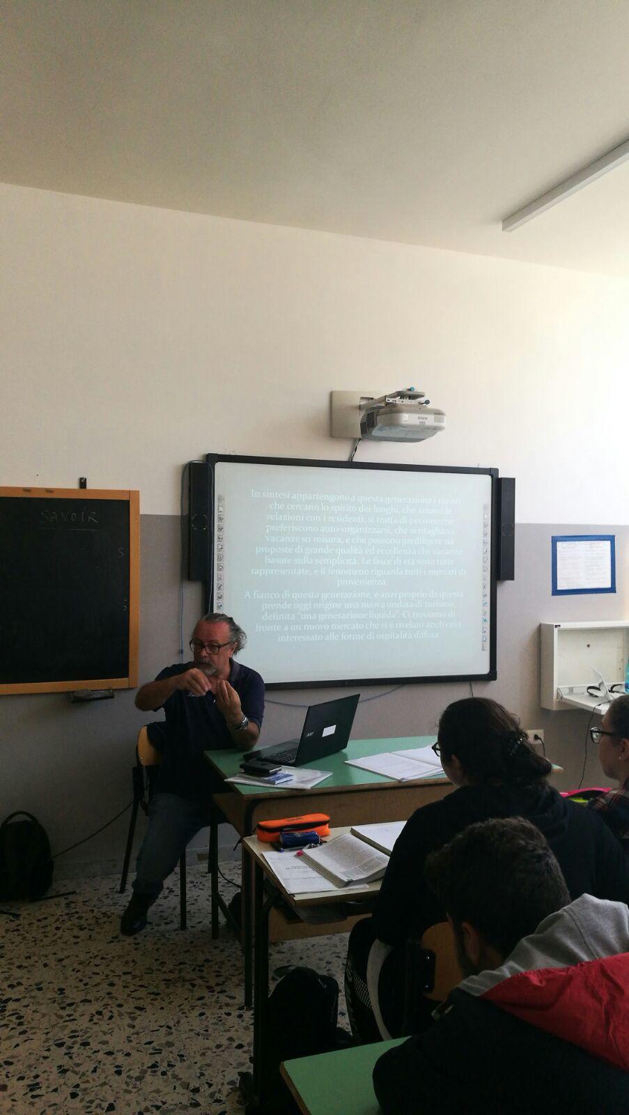 In vista dell’evento finale che si terrà a fine Ottobre, gli allievi della IV A AFM hanno partecipato a un workshop sulle tecniche di stesura di una guida turistica e sul marketing legato al turismo e ai testi d’uso (in particolare guide turistiche). Relatore del seminario Toni Isabella, che ha parlato di turismo enogastronomico, prodotti identitari, turismo e marketing, portando in classe esperienze maturate nel turismo e specifiche competenze legate anche al lavoro di ricerca e progettazione alla base del suo ultimo libro, una guida turistica su 12 itinerari del Cilento.