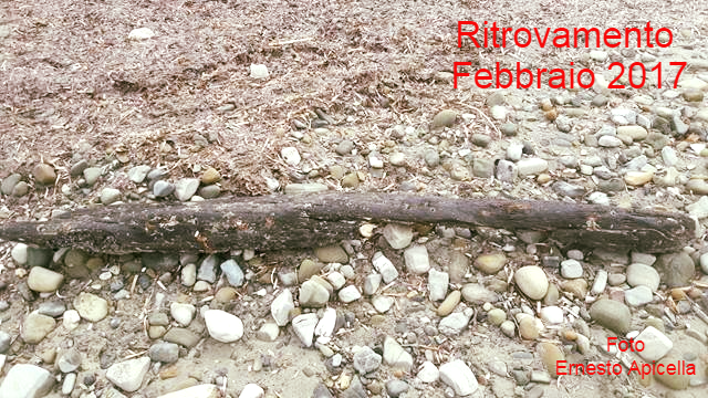 Molto probabilmente, in base alla forma e alla lunghezza dei reperti ritrovati con l’amico Carlo Scalzone, si tratta di una delle costole della nave (dette anche ordinate, che sono incastrate trasversalmente sulla chiglia) e di alcune parti della chiglia, oramai spaccata. Altri ritrovamenti sulla spiaggia del Lido Azzurro già li operammo nei mesi di Febbraio, Marzo e Settembre.