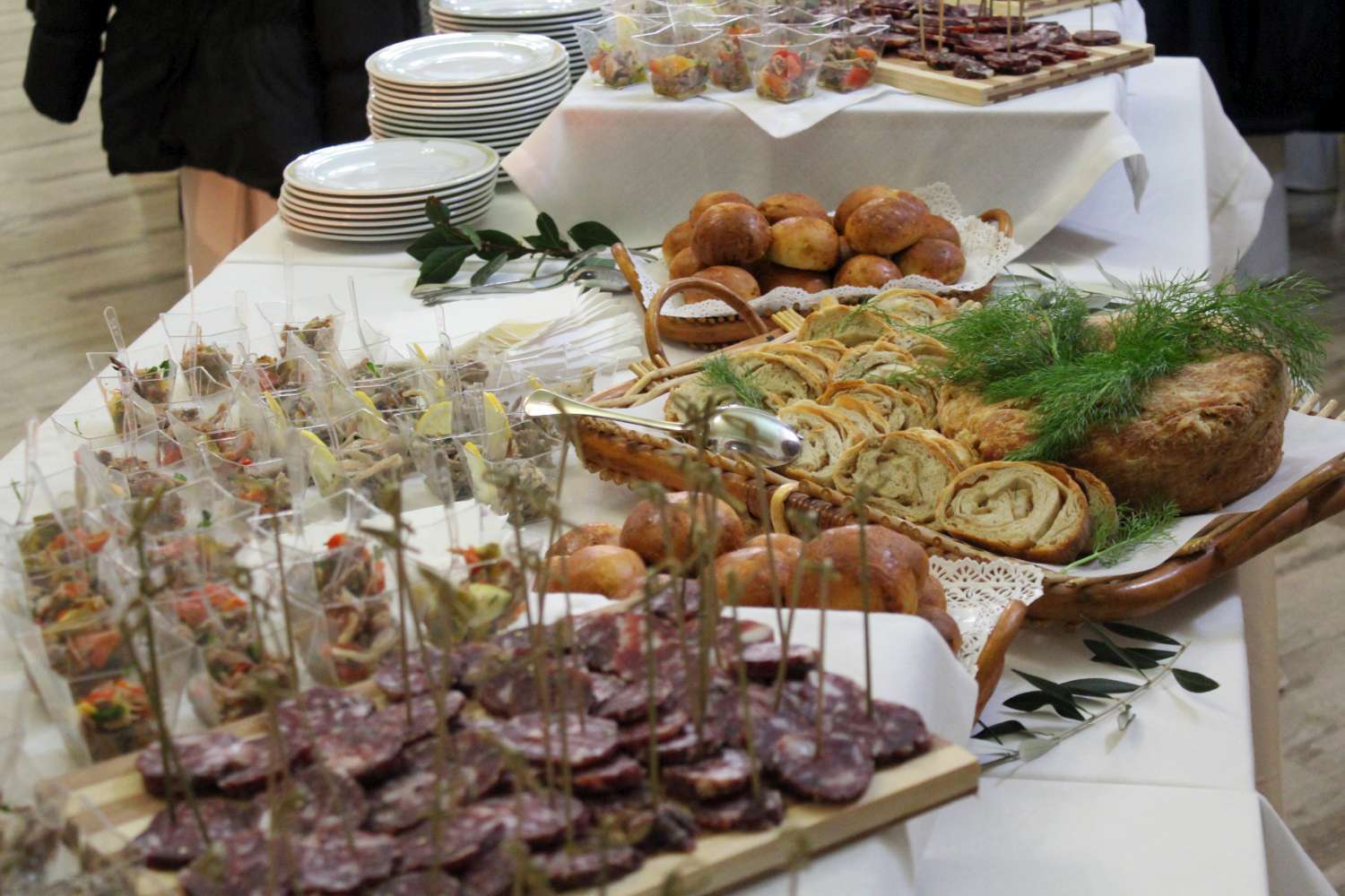 A fare gli onori di casa il nuovo gestore, il regista Giovanni Coi. Ad attenderci un buffet letteralmente ricco di bontà tutte caserecce: Insalatina di stinco con Papacelle, Testina di maiale al limone e menta, tortano con le sfrittole e soppressata della pignata affumicata.