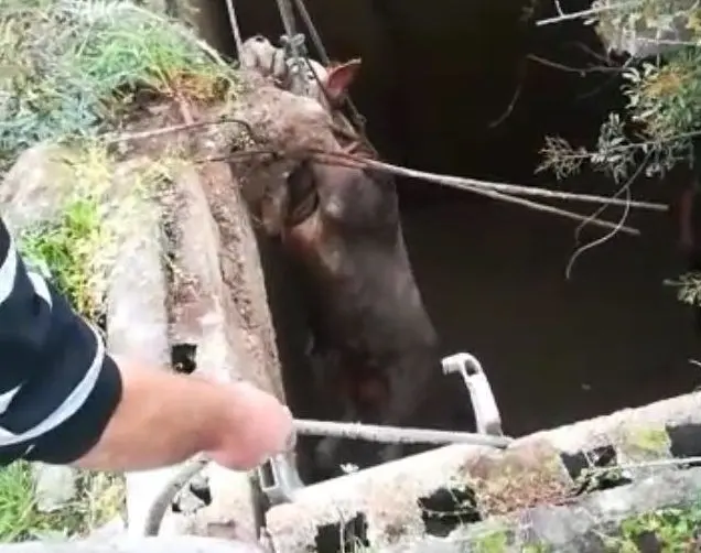 Entrambi gli animali erano finiti in una cisterna di accumulo per acqua. Rischiavano di annegare.