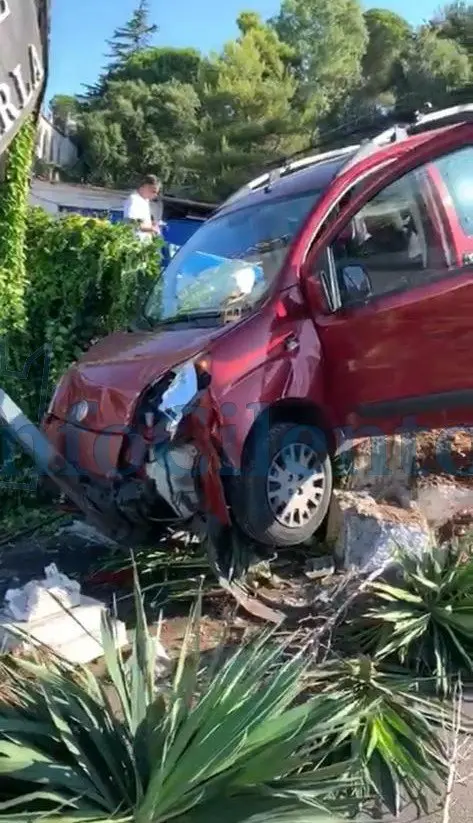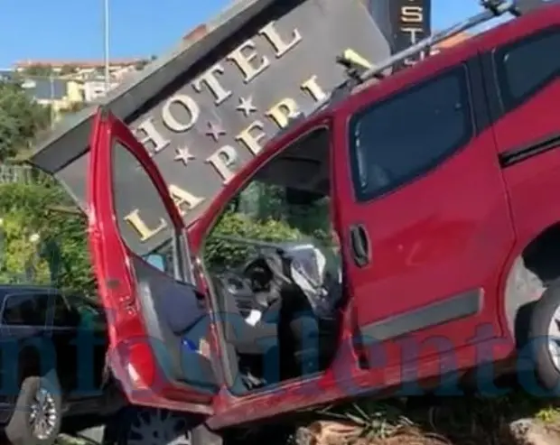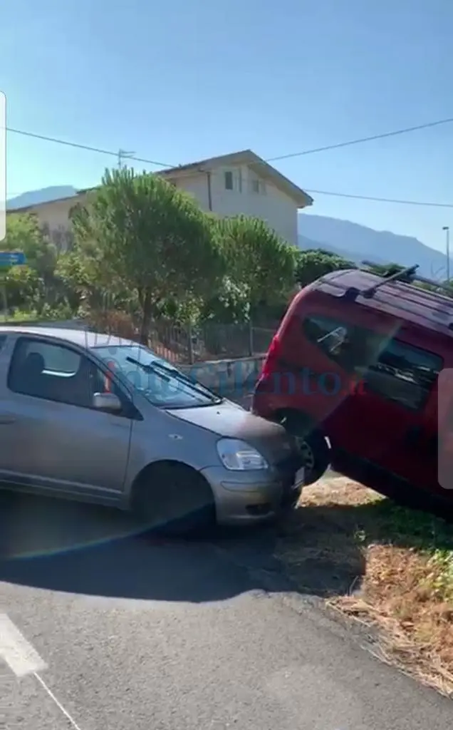 VIBONATI. Rocambolesco incidente stradale a Villammare, sulla SS18. Due auto si sono scontrate: ad impattare una Toyota Yaris e una Fiat Qubo, la prima guidata da una donna del posto, la seconda da un uomo, rispettivamente di 58 e 57 anni. Dopo lo scontro le due auto hanno travolto un’insegna di un hotel, distruggendola.