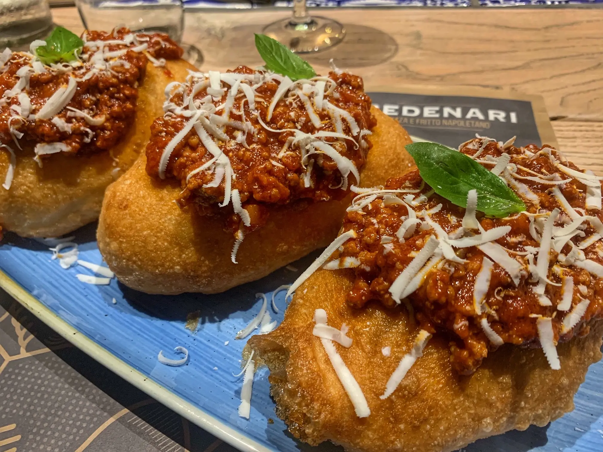 Si parte dai fritti. I crocchรจ di buona manifattura. Giustamente saporiti. Molto caserecci e lo si nota dalla spiccata artigianalitร della forma. Le montanare sono di importanti dimensioni, infatti, รจ preferibile dividerla in due. Impasto perfettamente lievitato e sapore molto identificativo.
