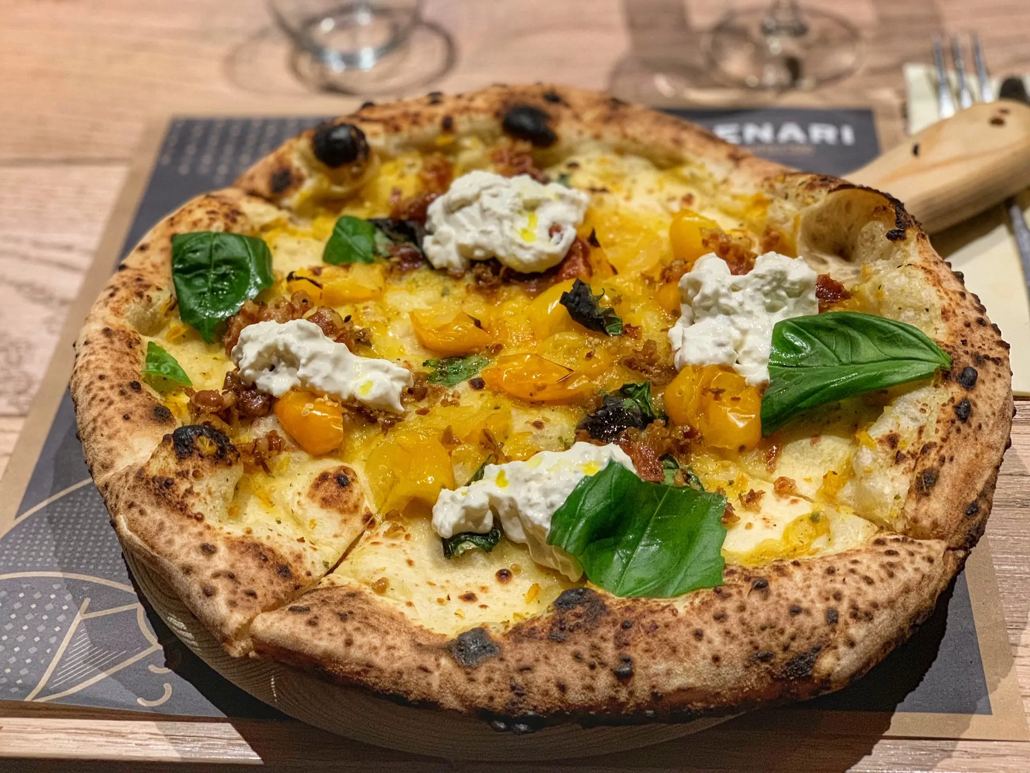 I condimenti delle pizze di ReDenari puntano alla valorizzazione di cibi di territorio dando il giusto spazio ad equilibrio e gustositร .