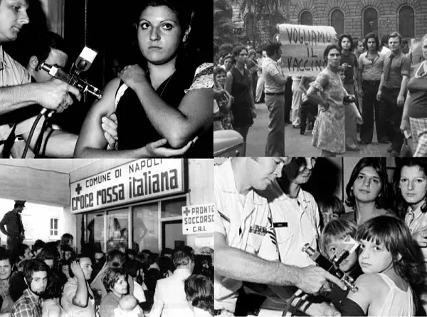 Con il terrore diffuso in tutta la Regione, grazie all’intervento americano, partì subito la campagna di vaccinazioni di massa. Gli americani, attraverso la “US Navy”, fecero giungere a Napoli un milione di dosi, scorte previste per i loro soldati impegnati nella guerra del Vietnam. Si videro anche per la prima volta le pistole mediche, che sparavano il siero anti-vibrione. Il picco del terrore si espresse quando un uomo in fila per la vaccinazione, scivolò, scatenando il panico tra la folla, che fuggendo gridava: “Tene ‘o colera, tene ‘o colera”.