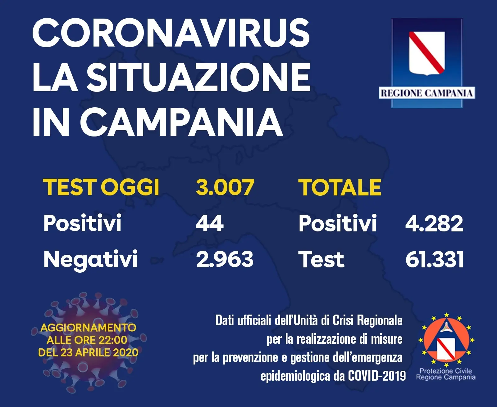 L’Unità di Crisi della Regione Campania comunica che sono pervenuti i seguenti dati: