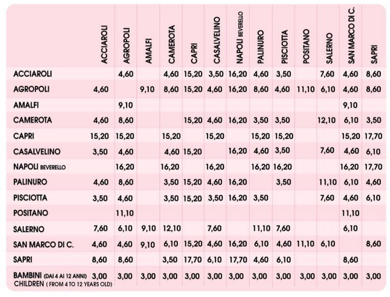 La Costa d’Amalfi sarà raggiungibile da Agropoli e San Marco di Castellabate (lunedì e venerdì) mentre tutti i porti saranno collegati a Salerno il sabato e la domenica.