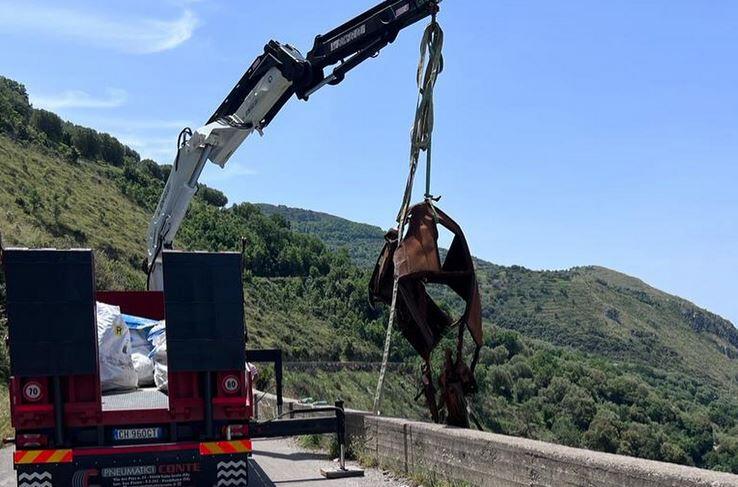 Oggi è stata avviata una importante operazione di bonifica che ha portato alla rimozione di tutti gli oggetti. Tra di questi lo scheletro di un’automobile che giaceva lì da diversi anni.