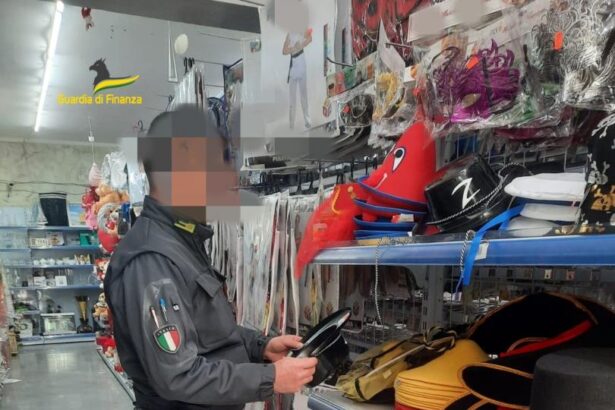 Si è proceduto pertanto al sequestro amministrativo di oltre 10 mila pezzi irregolari, tra maschere e gadget vari carnevaleschi. Il titolare dell’esercizio commerciale è stato segnalato alla competente Camera di Commercio e rischia ora una sanzione prevista da un minimo di 250 ad un massimo di 25 Mila euro.