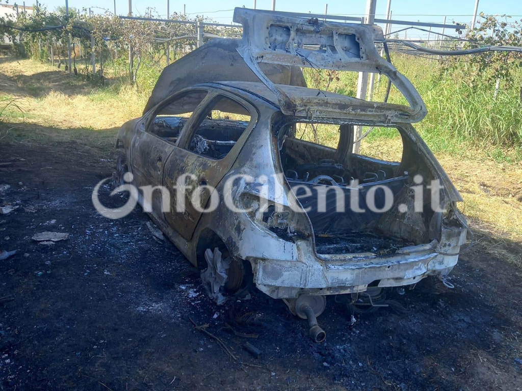 La Peugeot 206 rubata dallo spazio antistante ad un’abitazione di località Tempalta di Roccadaspide, lo scorso 22 maggio, è stata ritrovata completamente bruciata in un’area rurale di Eboli.