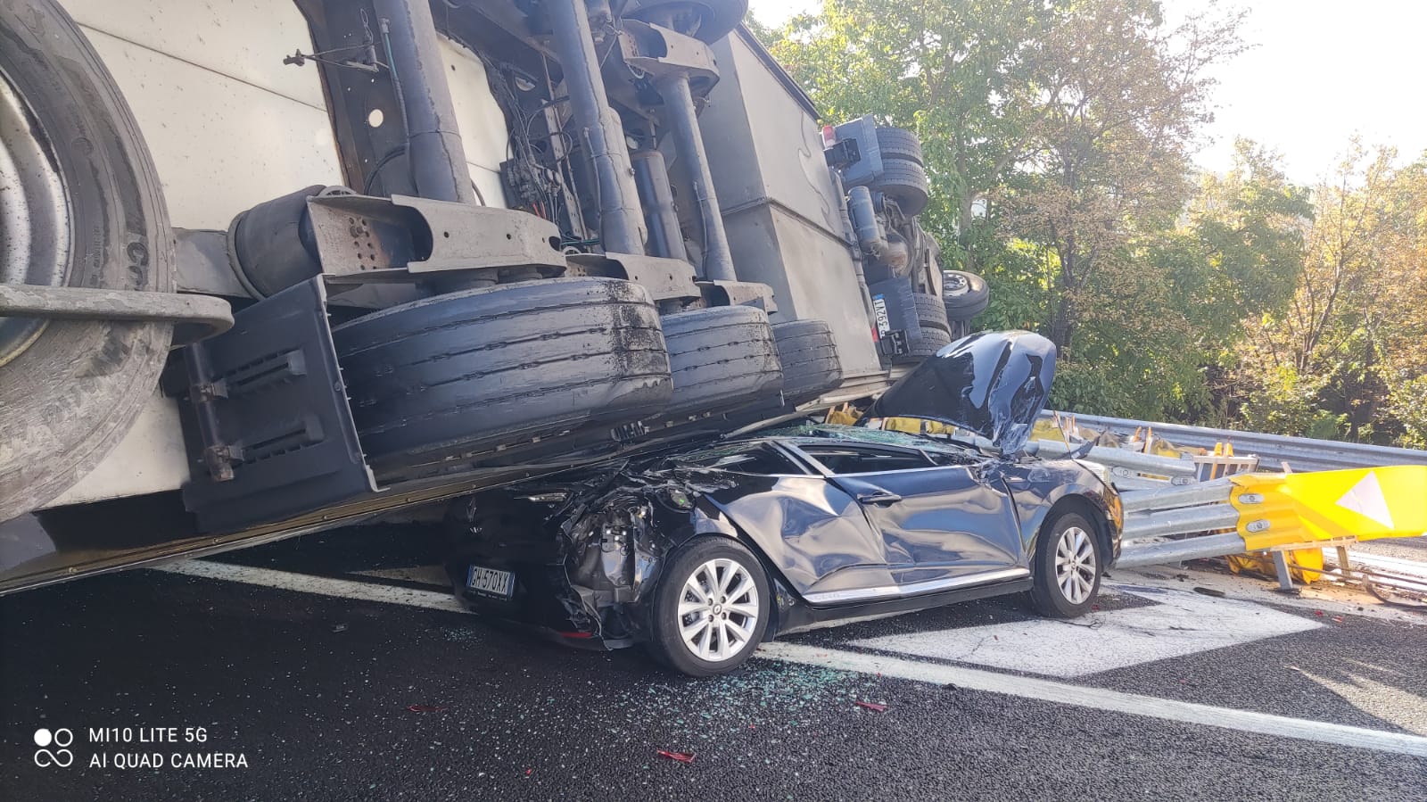 Per cause da accertare un’autoarticolato che trasportava carni ha perso il controllo invadendo la carreggiata per poi ribaltarsi su un’autovettura in transito.