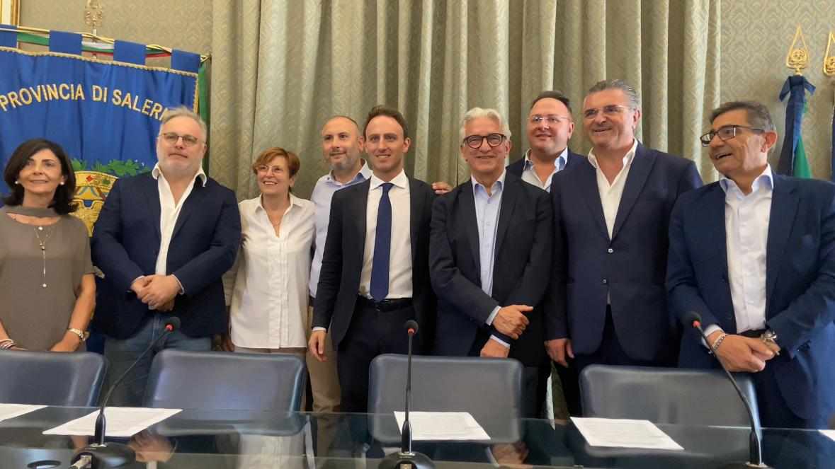 Presenti alla firma anche il consigliere provinciale delegato ai trasporti Francesco Morra ed il consigliere regionale della Campania e presidente della IV Commissione Urbanistica, Trasporti e Lavori Pubblici Luca Cascone e il deputato on. Piero De Luca.
