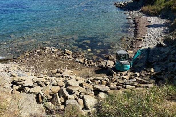Questa mattina il responsabile dell’ufficio tecnico del comune di Agropoli, Agostino Sica, il comandante della Polizia locale Antonio Rinaldi, coadiuvati da altro personale della Polizia municipale, hanno effettuato un sopralluogo presso la spiaggia di San Francesco dove erano in corso i lavori di “messa in sicurezza”, mediante lo spostamento del cumulo di lapidei, autorizzati dalla Procura della Repubblica di Vallo della Lucania, questo al fine di verificare se i lavori relativi allo spostamento dei massi posizionati su terreno demaniale si svolgessero conformi a quanto autorizzato ovvero se fossero stati “spostati” su proprietà privata.