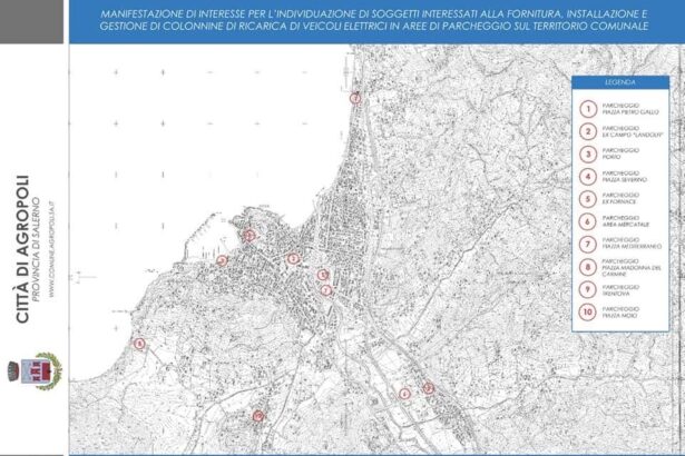 Il Comune di Agropoli ha individuato le seguenti aree di parcheggio per l’installazione delle nuove colonnine: Piazza Pietro Gallo, Ex Campo Landolfi, Porto, Piazza Sanseverino, Fornace, Area Mercatale, Piazza Mediterraneo, Trentova, Piazzetta Madonna del Carmine e Piazza Moio.