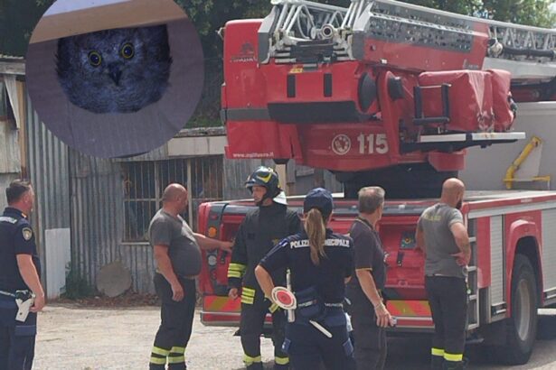 Dispiegamento di forze per salvare un pullo di assiolo ritrovato a terra da una cittadina. Sul posto Vigili del Fuoco, Polizia Municipale, Carabinieri forestali l’associazione Genesi per l’ambiente.