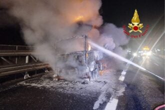 Furgone a fuoco in autostrada, intervengono i vigili del fuoco